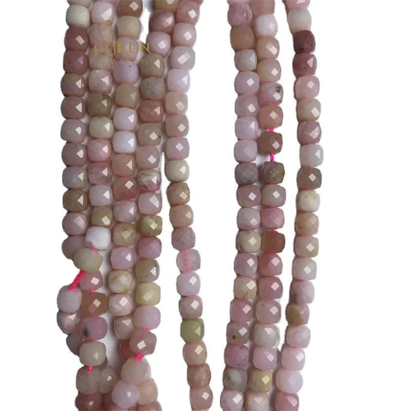 4–5 mm natürliche Würfel-Quadratperlen, facettierte Perlen, Opal- und rosa Opalsteinperlen zur Schmuckherstellung