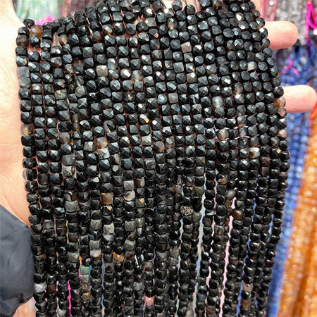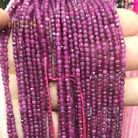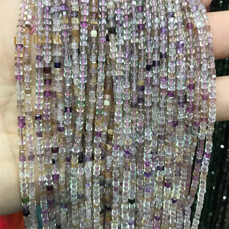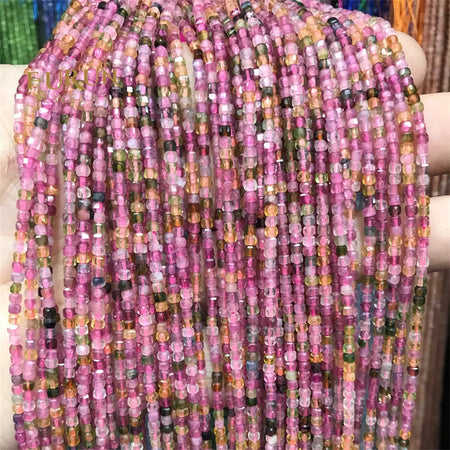 Perles carrées à facettes en rubis naturel 2x2 mm Perles carrées à facettes en agate tourmaline multicolore pour la fabrication de bijoux