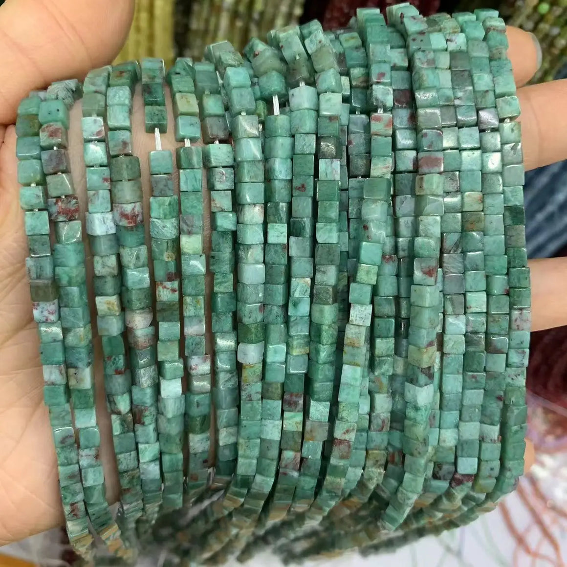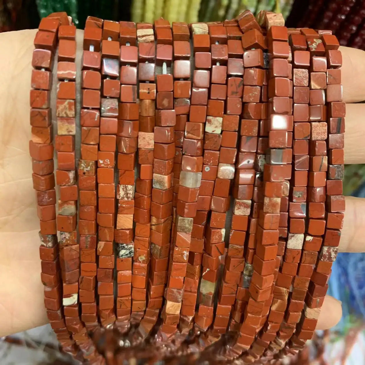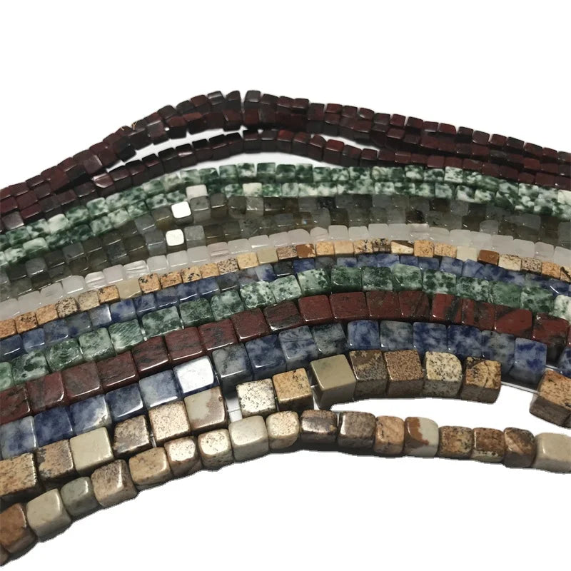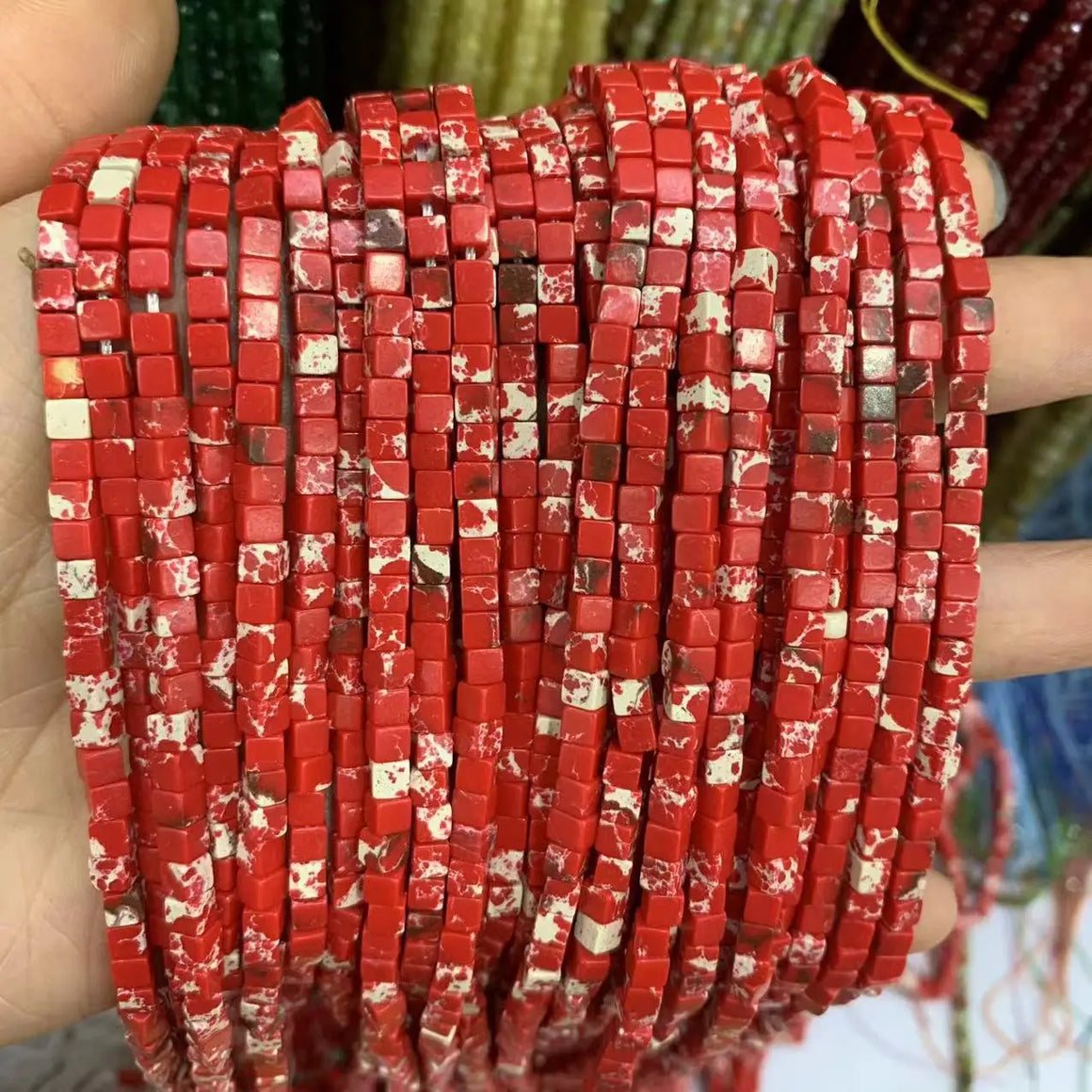 Perles carrées 3x3mm en jaspe rouge naturel, amazonite, tourmaline, agate, pierres précieuses en vrac pour la fabrication de colliers et de boucles d'oreilles
