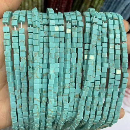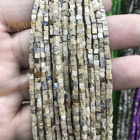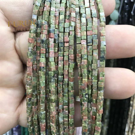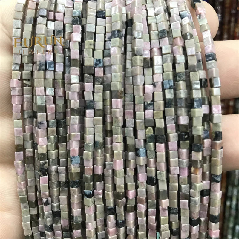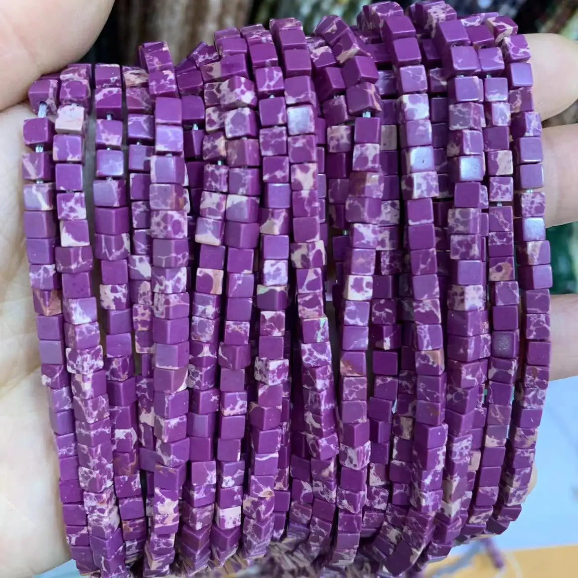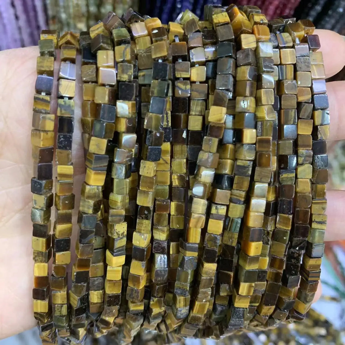 Perles carrées 3x3mm en jaspe rouge naturel, amazonite, tourmaline, agate, pierres précieuses en vrac pour la fabrication de colliers et de boucles d'oreilles