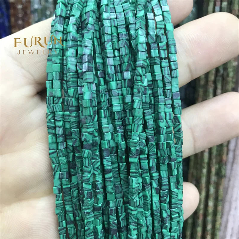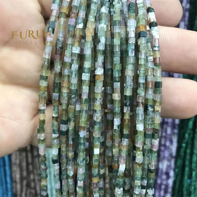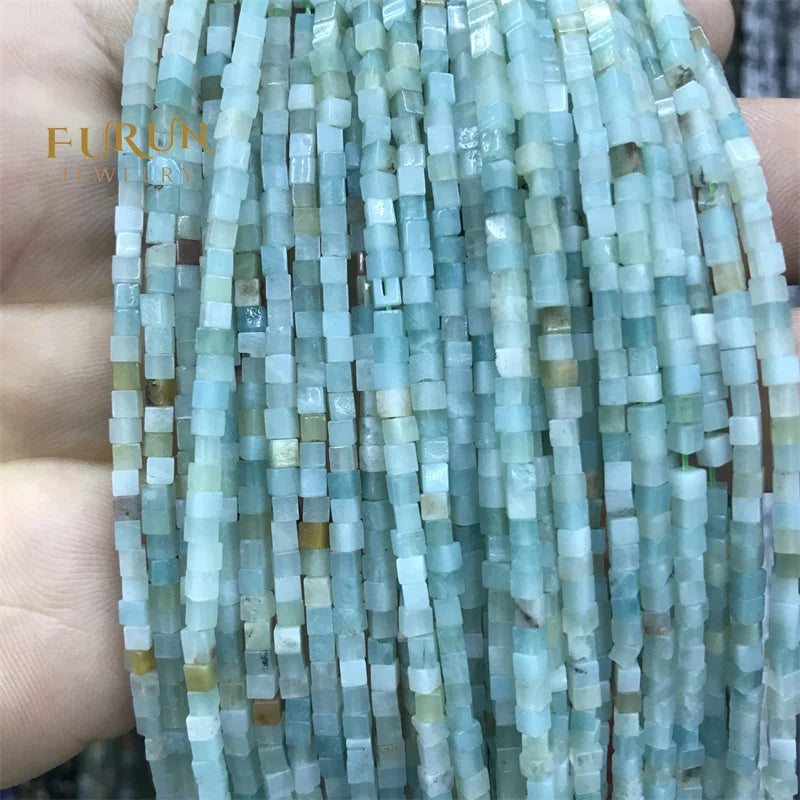 Perles carrées 3x3mm Jaspe rouge naturel Amazonite Tourmaline Agate Pierre précieuse Perles en vrac