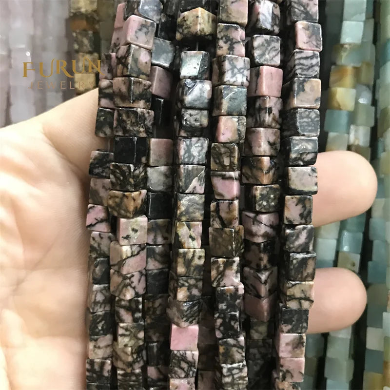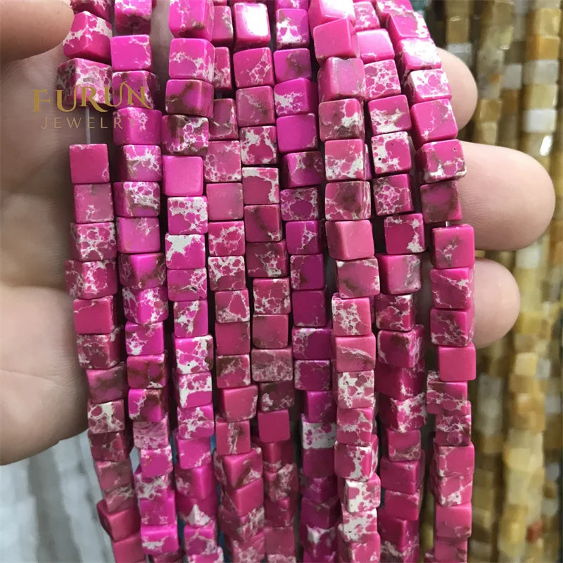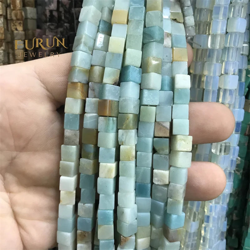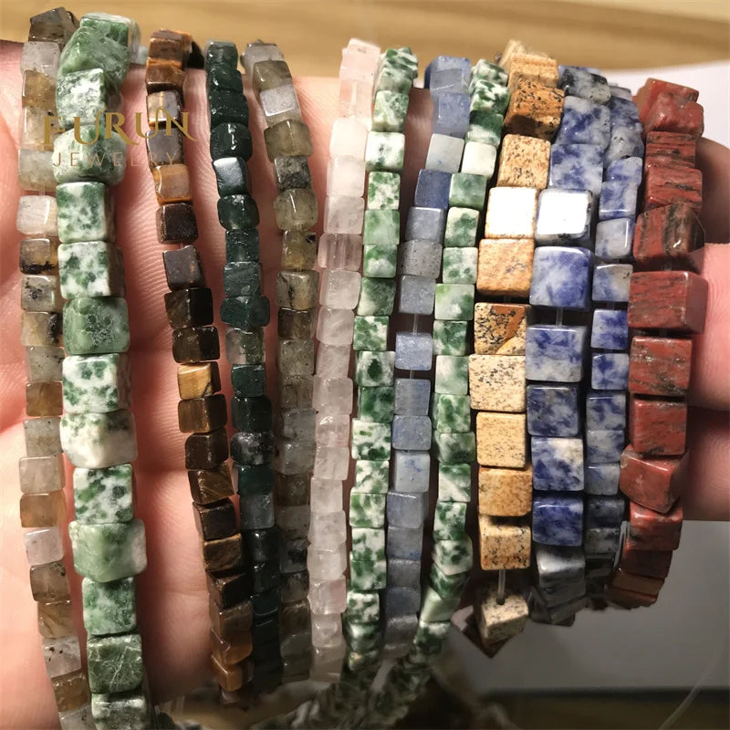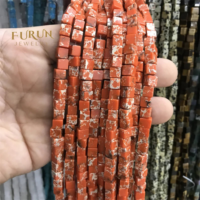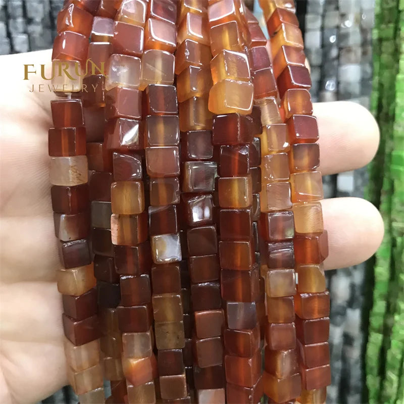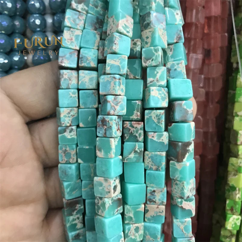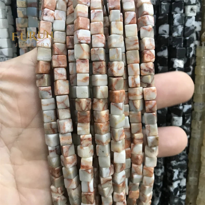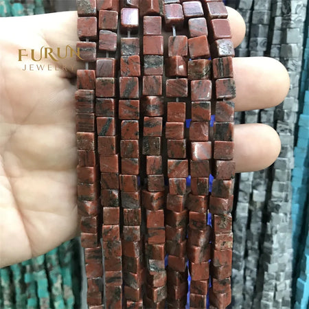 Perles carrées de 6 mm et 8 mm en jaspe rouge naturel, amazonite, tourmaline, agate, pierres précieuses en vrac pour la fabrication de colliers et de boucles d'oreilles