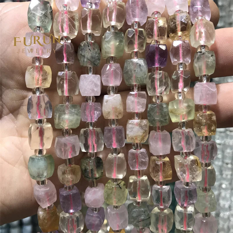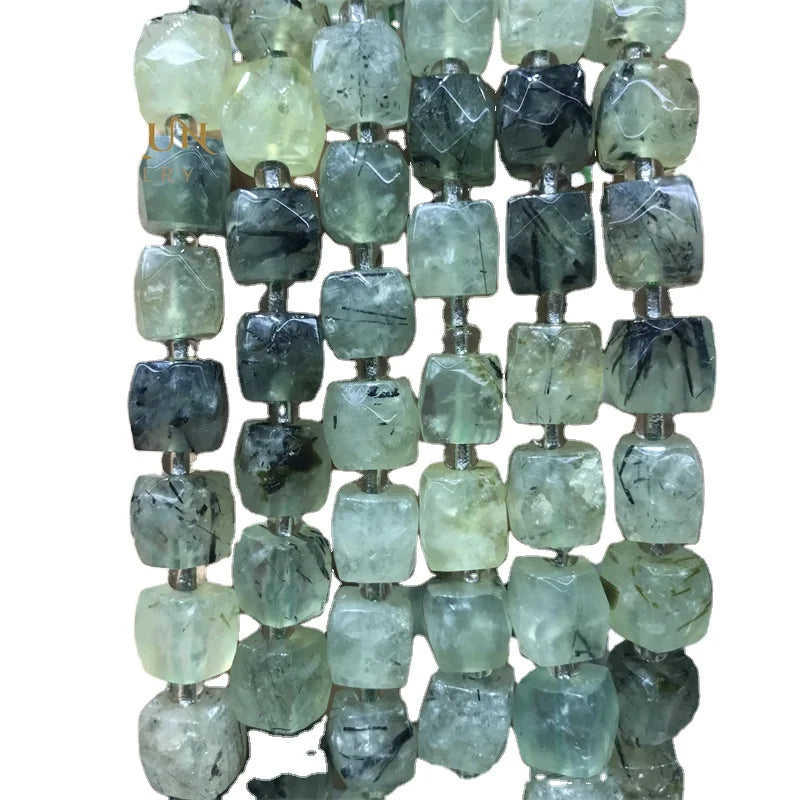 Perles en pierre de préhnite cubique, véritables pierres précieuses naturelles à facettes, carrées, pour bijoux à faire soi-même, 8 mm et 10 mm