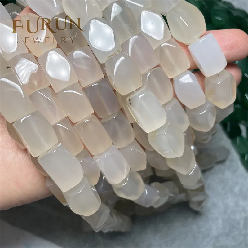 Perles à facettes en agate blanche naturelle 12 x 16 mm, perles rectangulaires irrégulières en vrac, facettes de coupe transparentes, prix d'usine