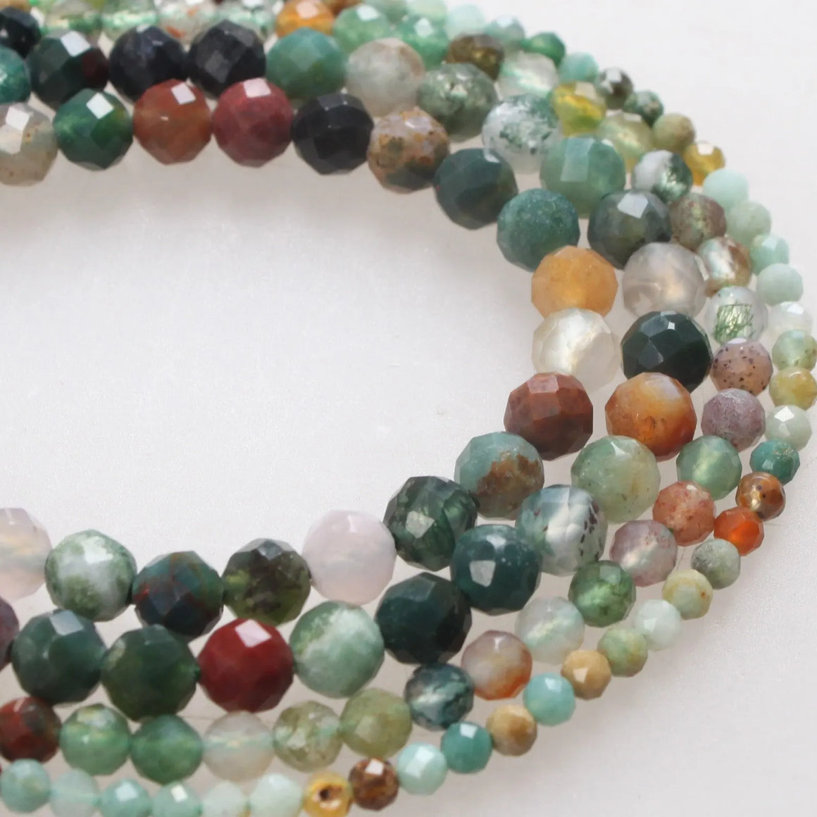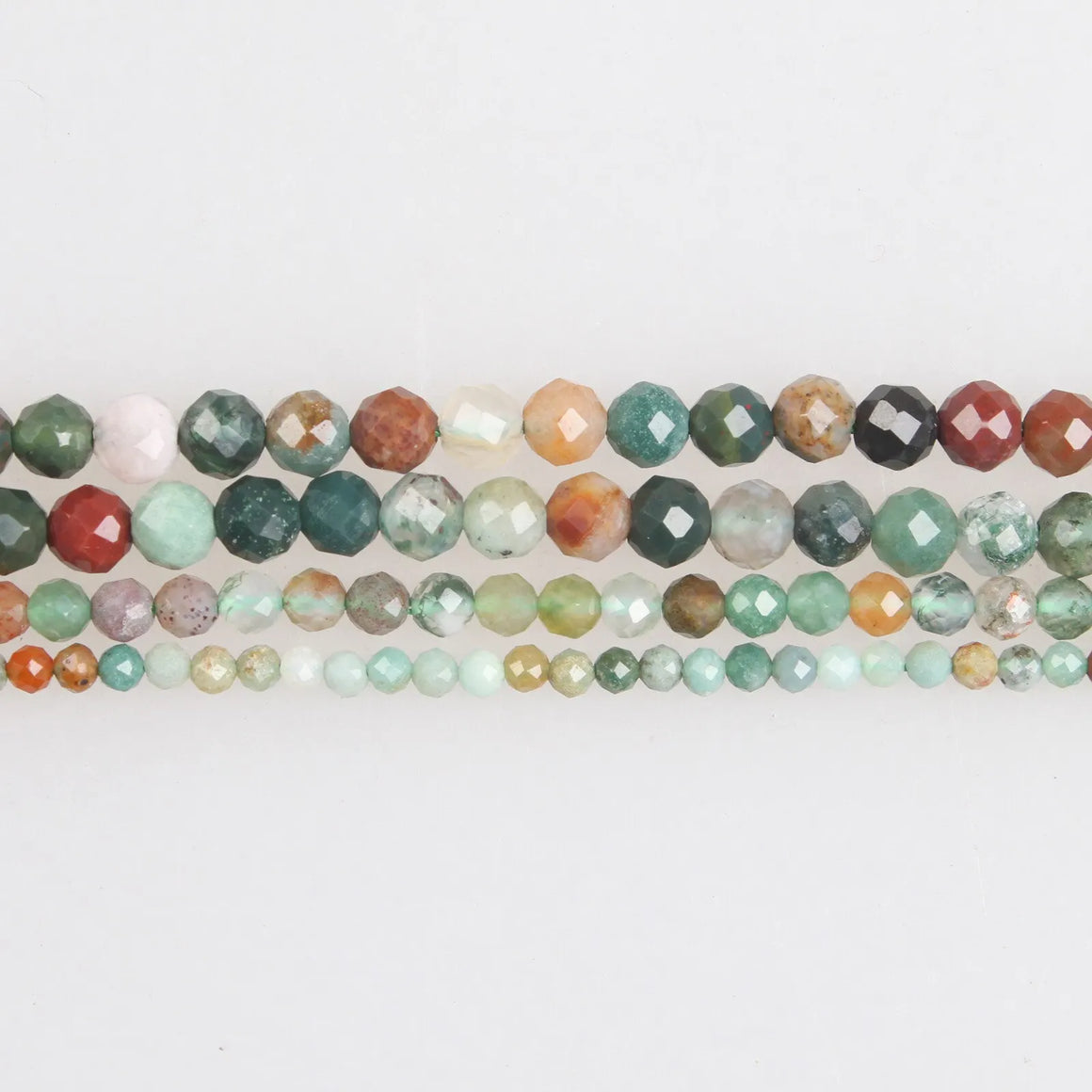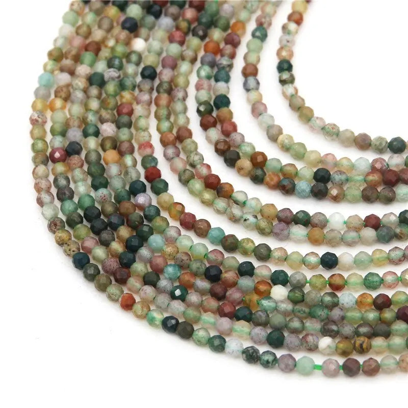 Perles rondes en agate indienne naturelle à facettes de 2 mm, 3 mm et 4 mm