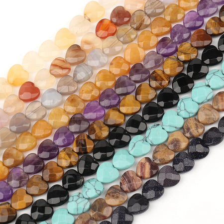 10mm/15MM Faceted Heart Natural Amethyst Stone Beads Gemstone Beads Crystal Healing Drilled Loose Beads for Jewel
