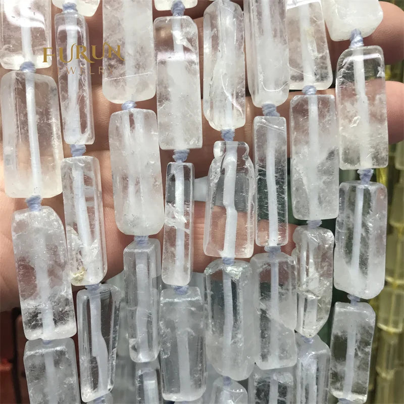 Natural Gemstone Multiple Sizes Rectangle Shape Rock Crystal Quartz and White Crystal Red Agate Beads Loose Stone Beads Bracelet