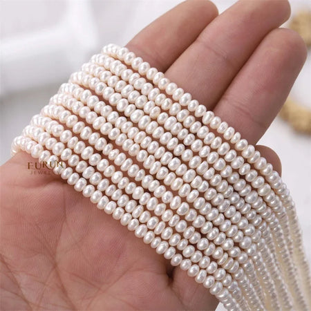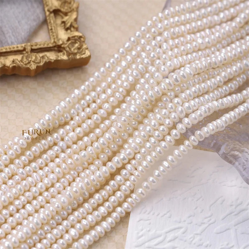 2-4mm Small White freshwater Pearl Smooth roundel Wheel abacus Spacer String Beads Jewelry accessories for necklace bracelet