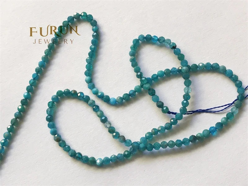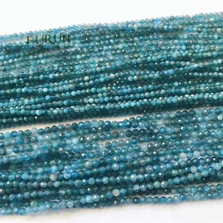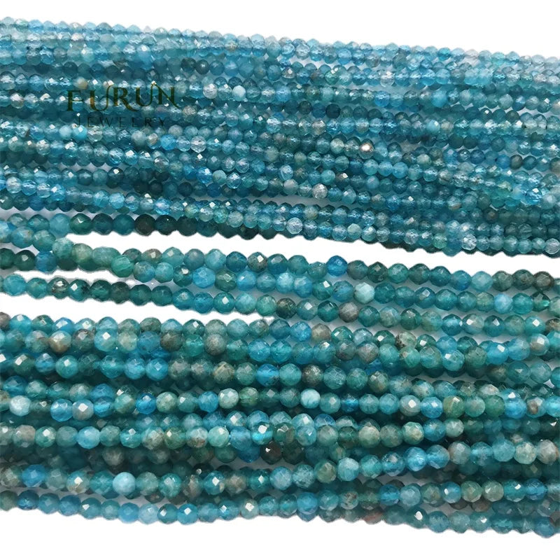 2mm 3mm 4mm Natural Blue Apatite Stone Faceted Round Beads Mini Stone Beads Drilled Tiny Ball Sting Bead for Jewelry Making 15"