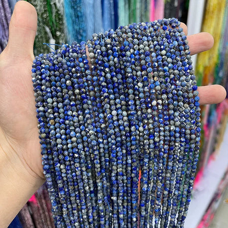 2mm 3mm 4mm Natural Blue Lapis Lazuli Beads Faceted Loose Round Gemstone Loose faceted beads for Jewelry Making
