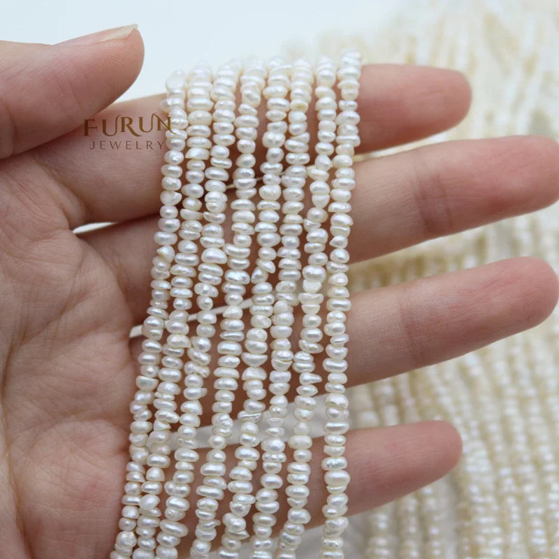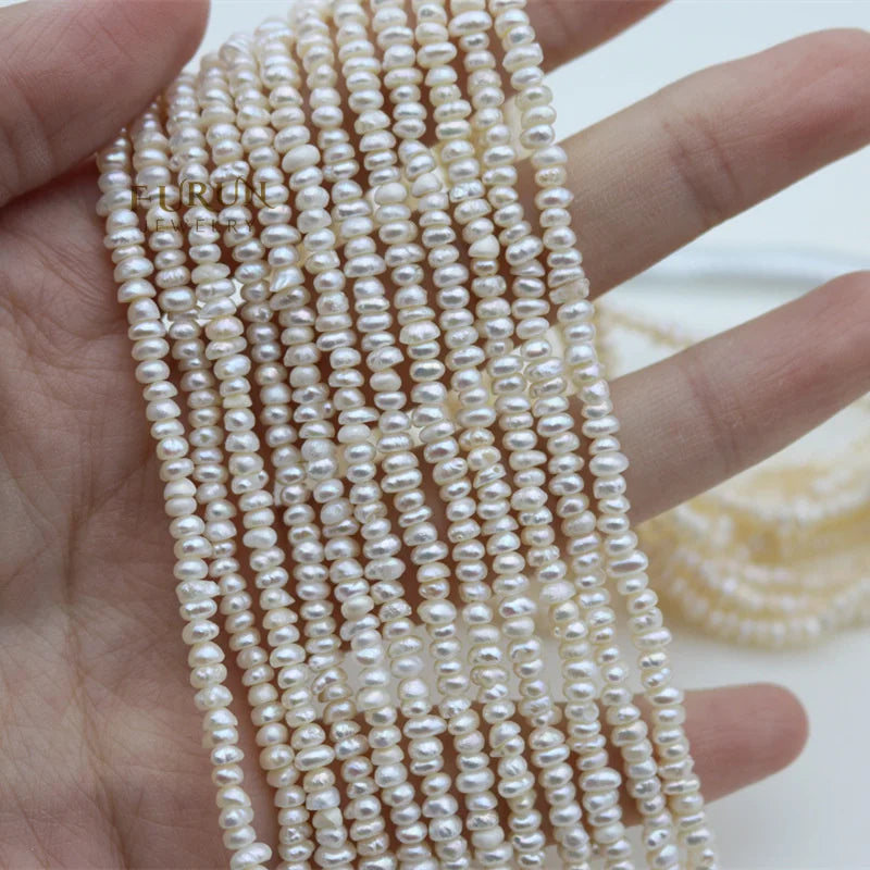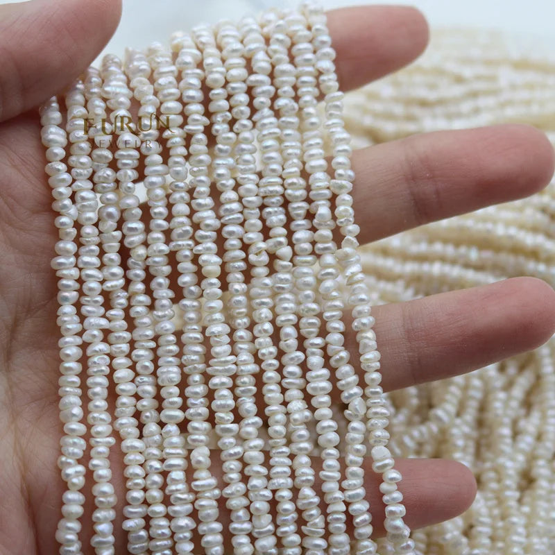 3-4mm Small flat nugget Bead Natural Freshwater Pearl white baby pearl String Beads for jewelry making