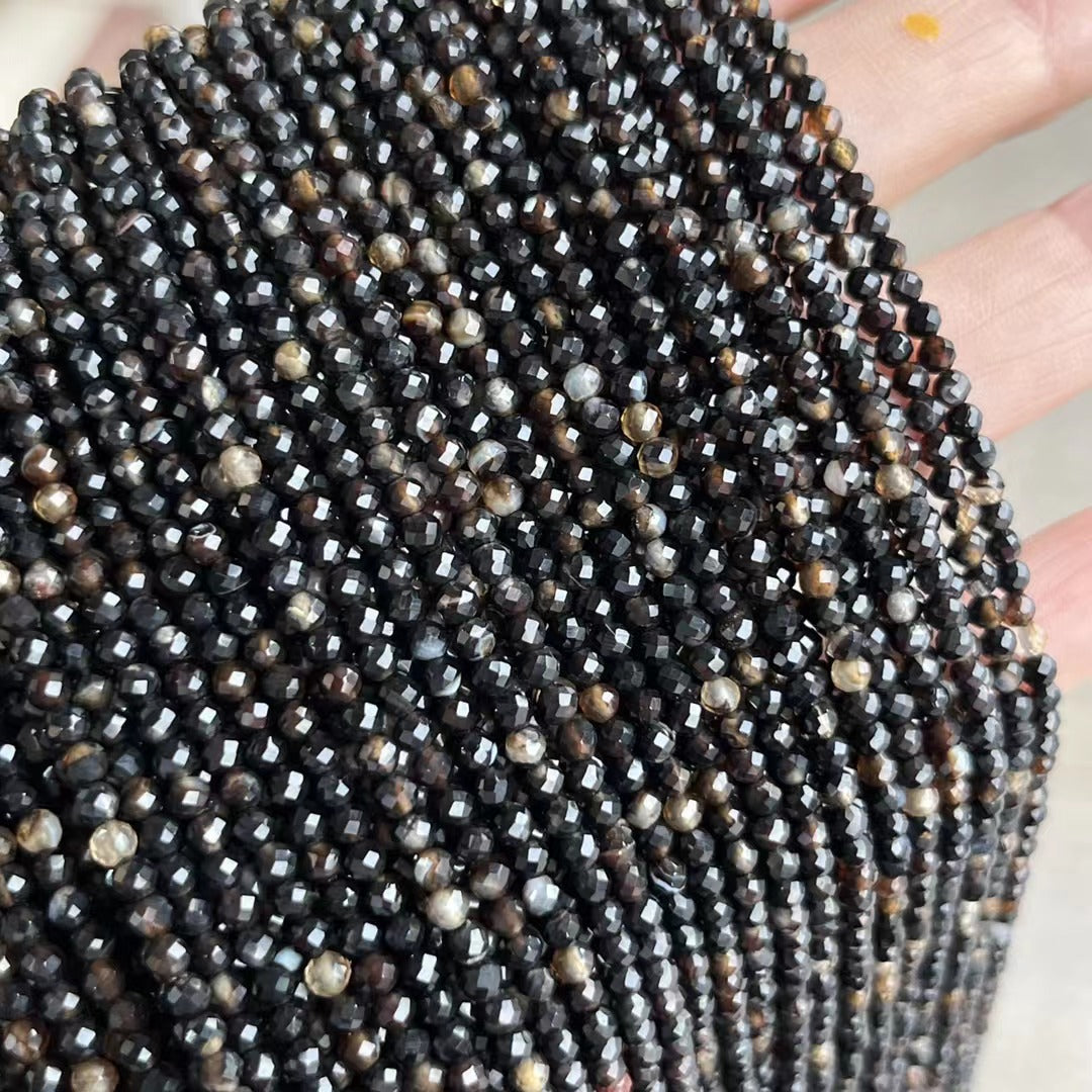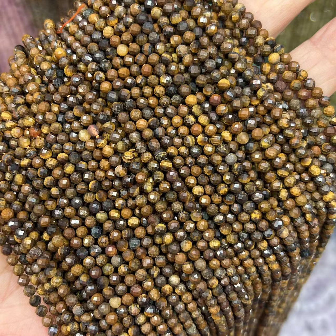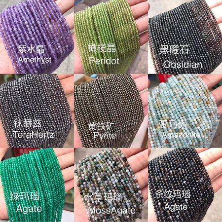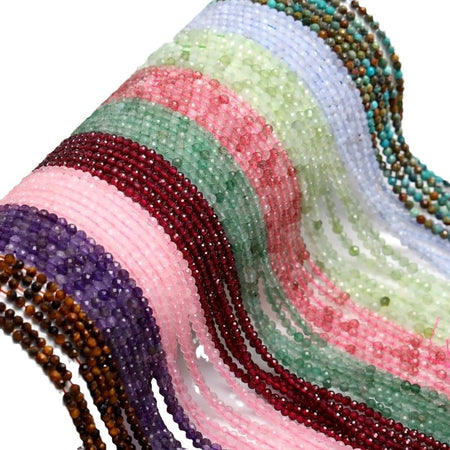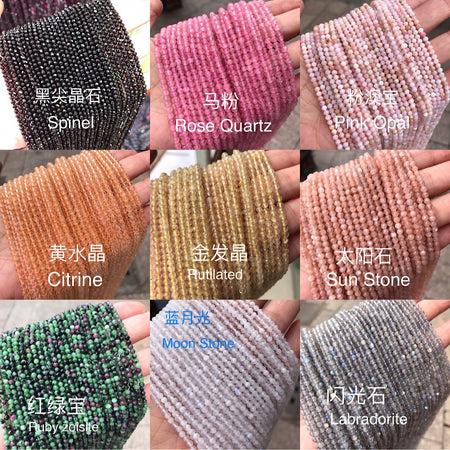 3MM Faceted Natural Gemstone round beads Genuine semi-precious stones cutting Loose Strand Beads for Jewelry Making