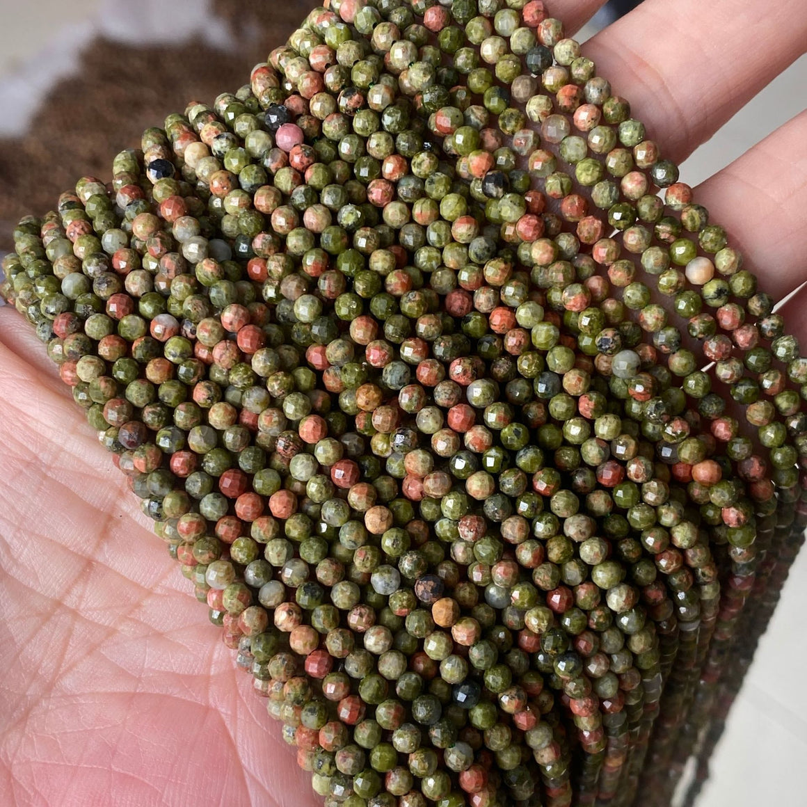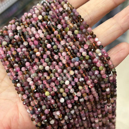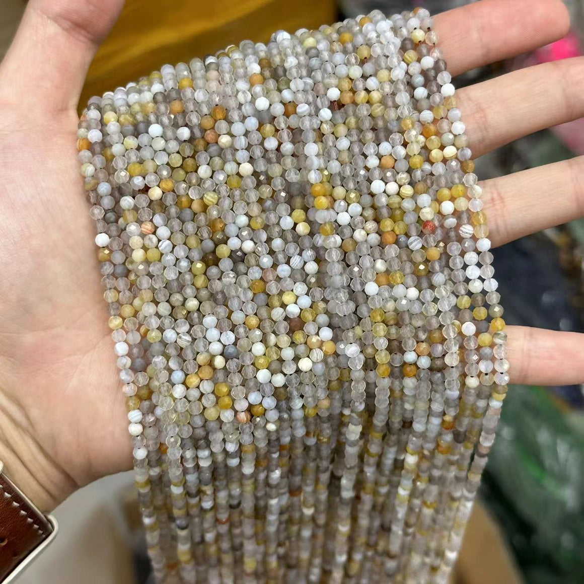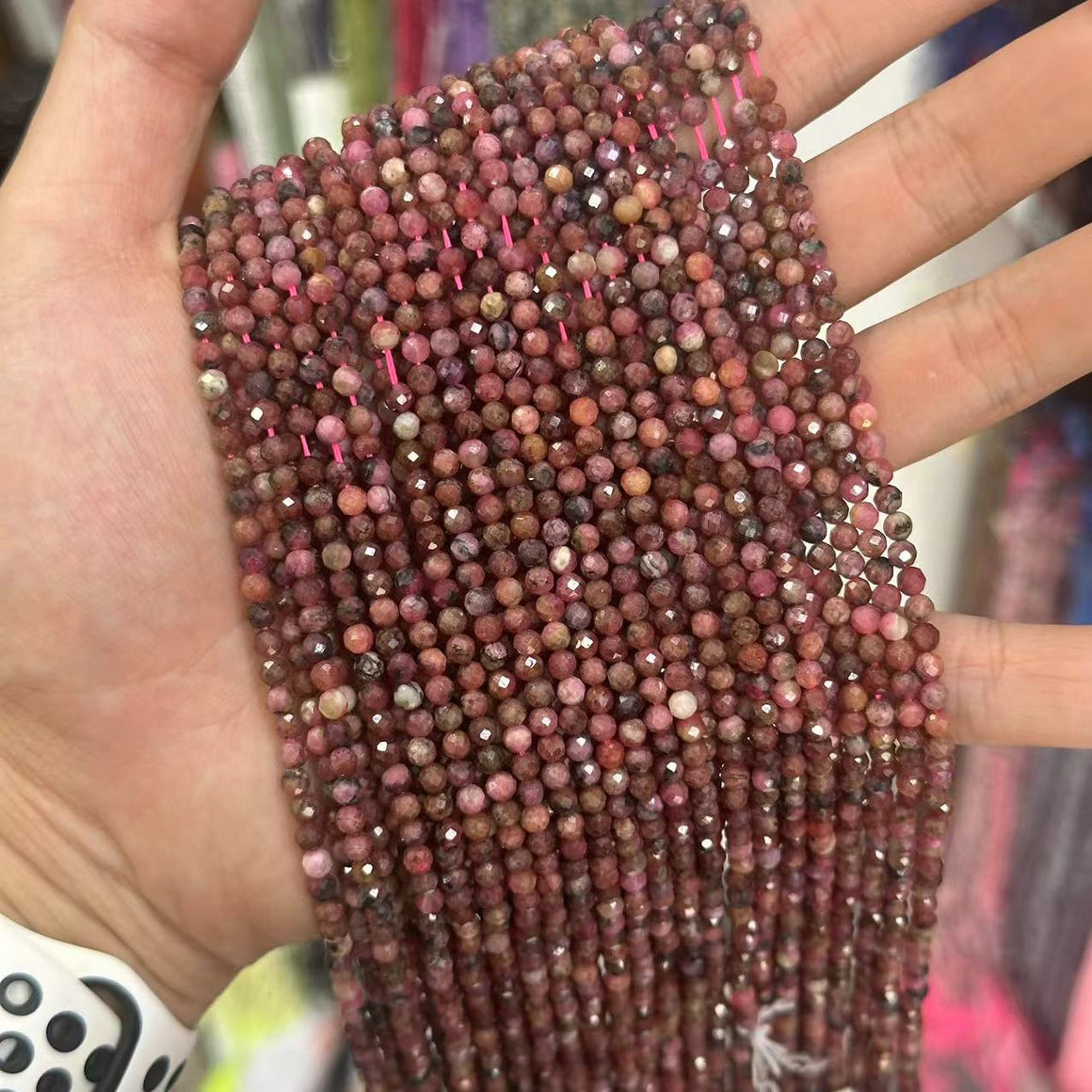3MM Faceted Natural Gemstone round beads Genuine semi-precious stones cutting Loose Strand Beads for Jewelry Making