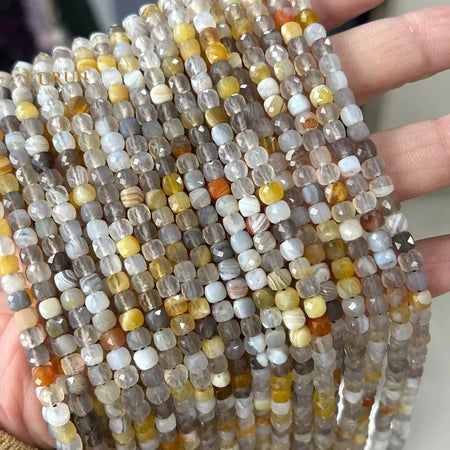 4-5mm Multi-faceted Square Natural Crystal Agate Crafts Gem Bead Yellow Opal Beads for DIY Jewelry Accessories