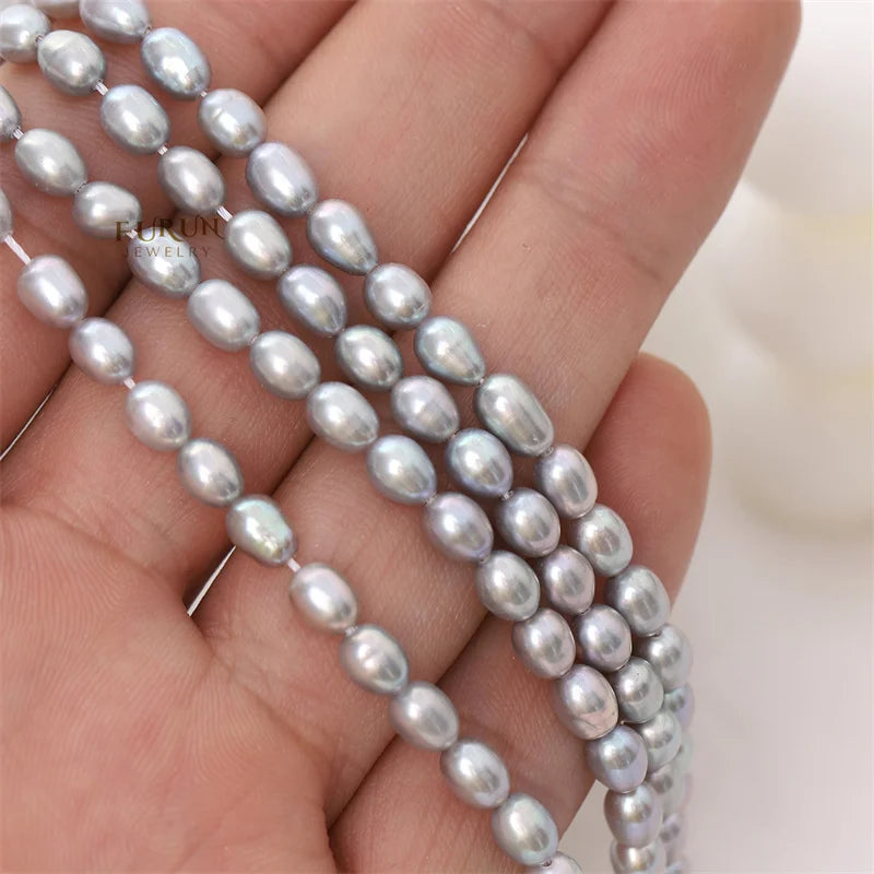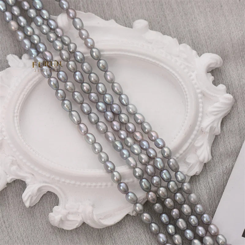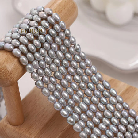4-5mm Gray Small Rice Bead Natural Freshwater Pearl Smooth Oval Pearl String Beads Strong luster for jewelry making