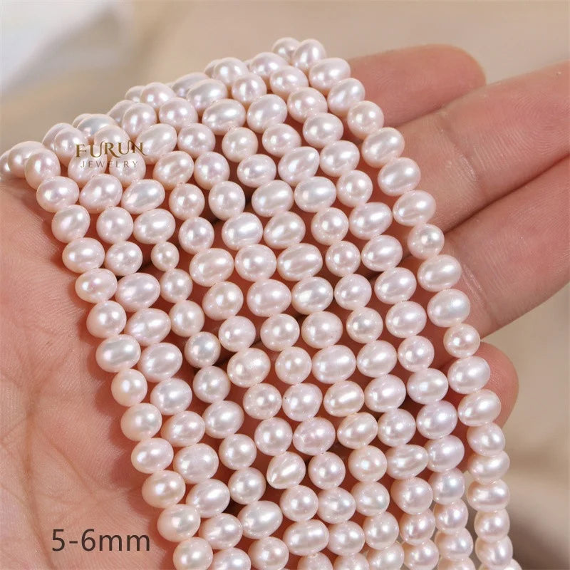 4-8mm Egg Potato Shape Good luster White Freshwater Pearl Smooth Oval Pearl Near Round Beads for necklace jewelry making
