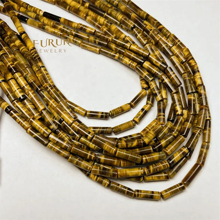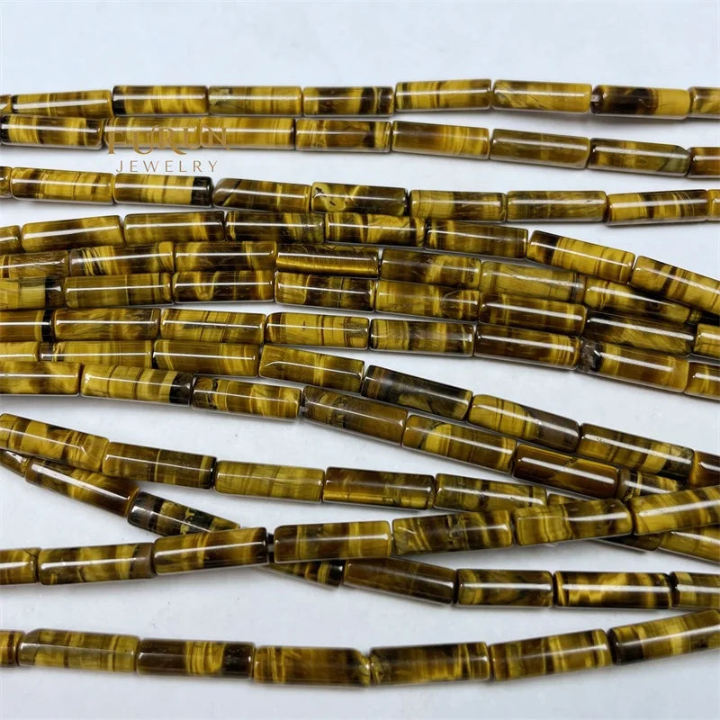4x13mm Natural Stone Tiger Eye Round Tube Cylinder Column Spacer Beads loose beads for necklaceJewelry Making Furun Jewelry
