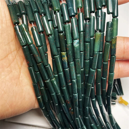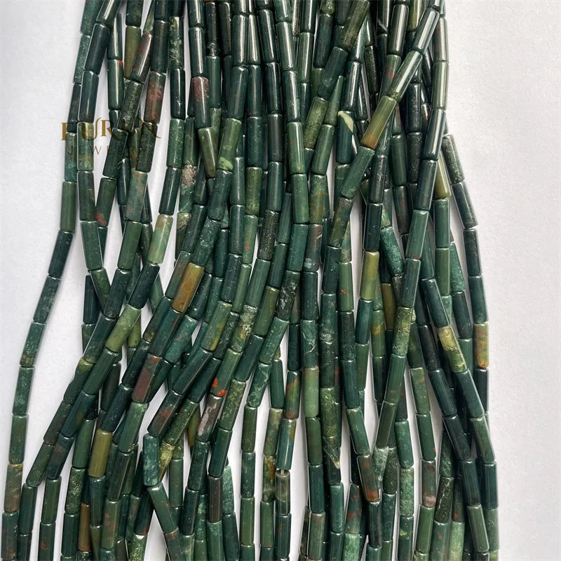 4x13mm Smooth tube cylinder column beads Green Indian Bloodstone String Beads Healing Gemstone String Beads for Jewelry Making