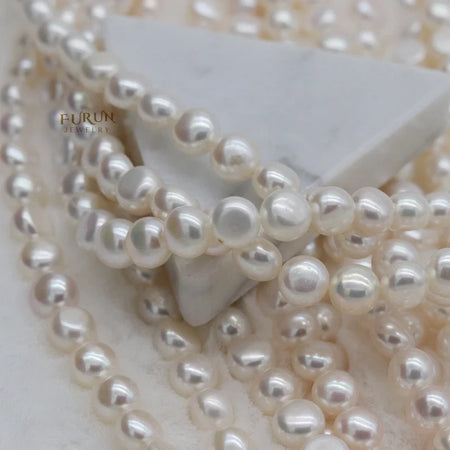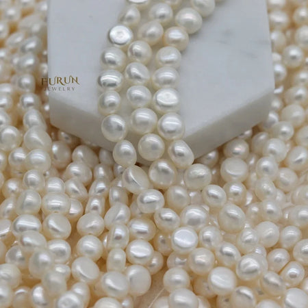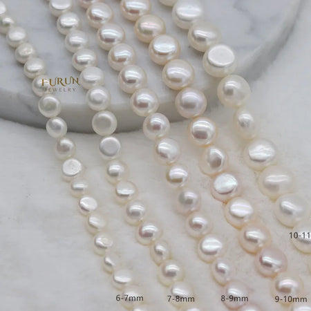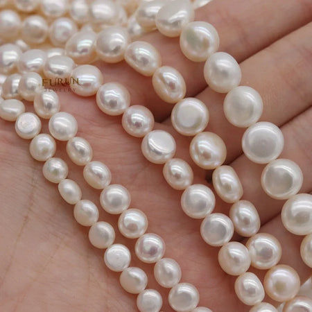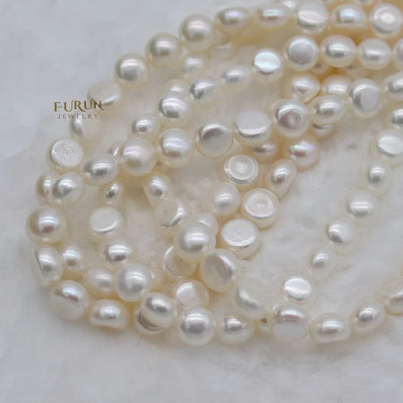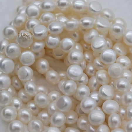 6-10mm Round Bread Pearl Bead Good luster White Freshwater Pearl flat round Strand Beads side drilled for jewelry making