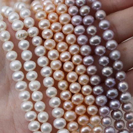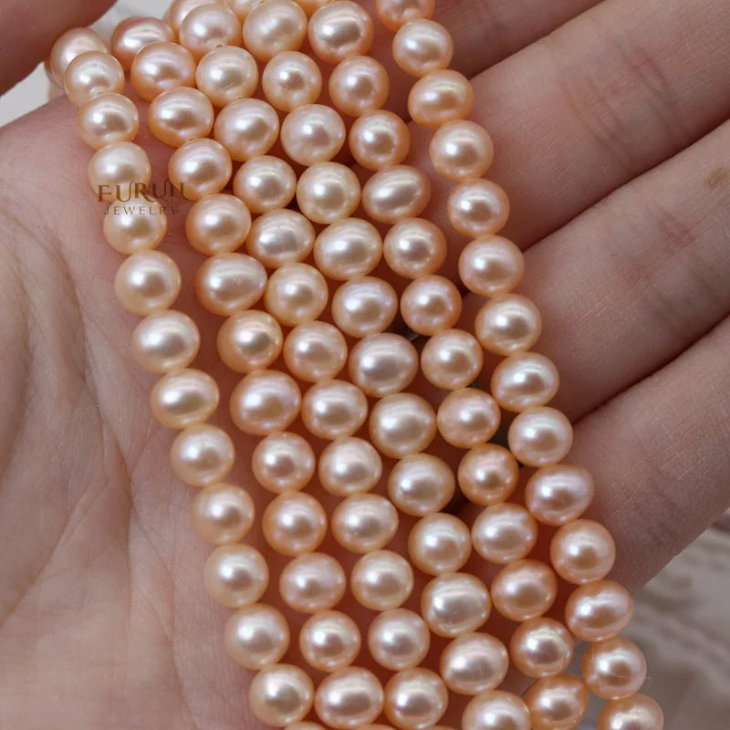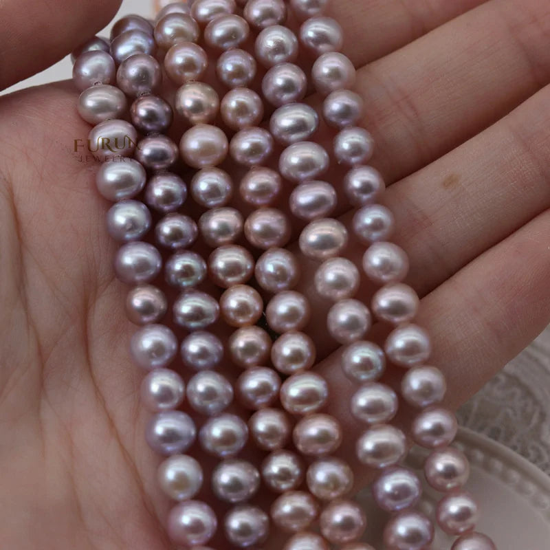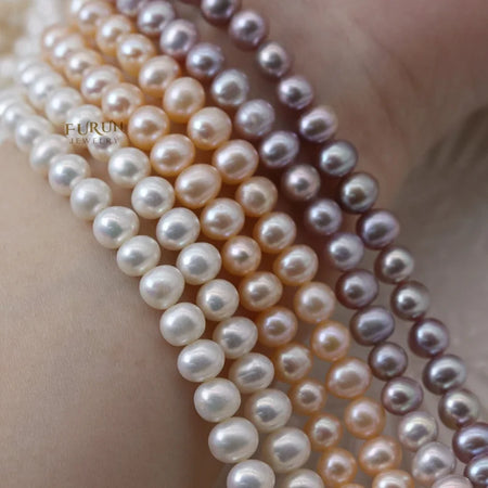 6-7mm Egg Potato Shape Good luster White Purple Gold Freshwater Pearl Smooth Oval Pearl Near Round Beads for jewelry making