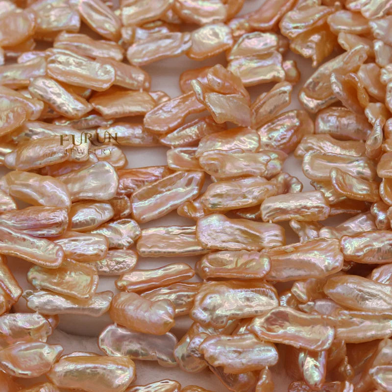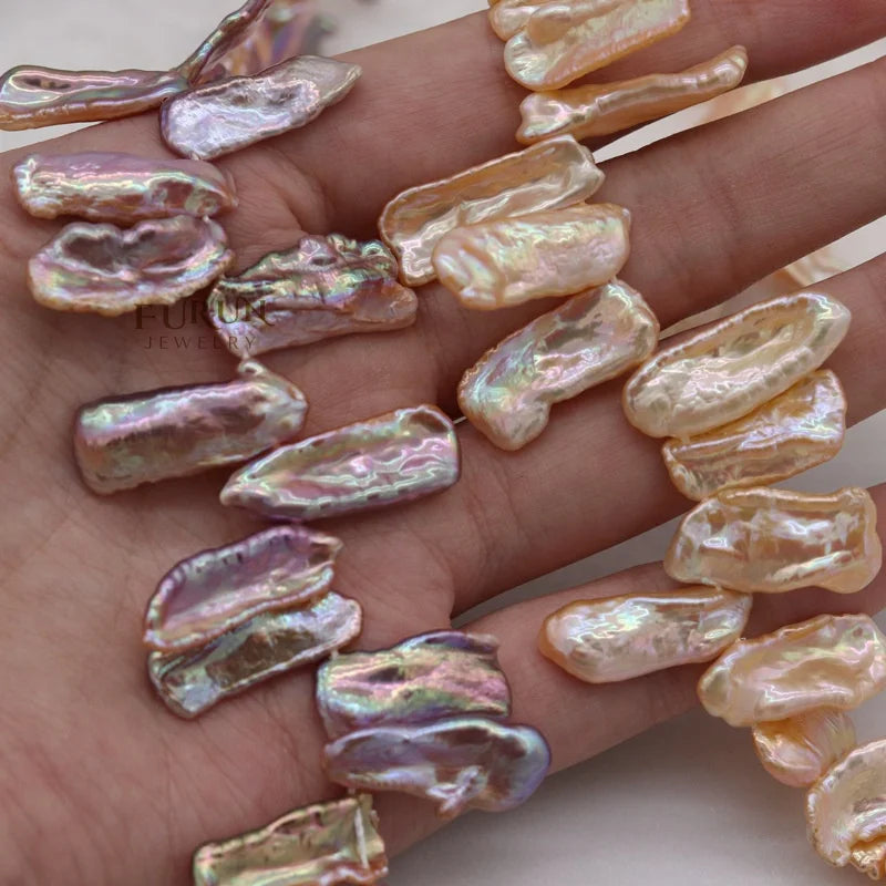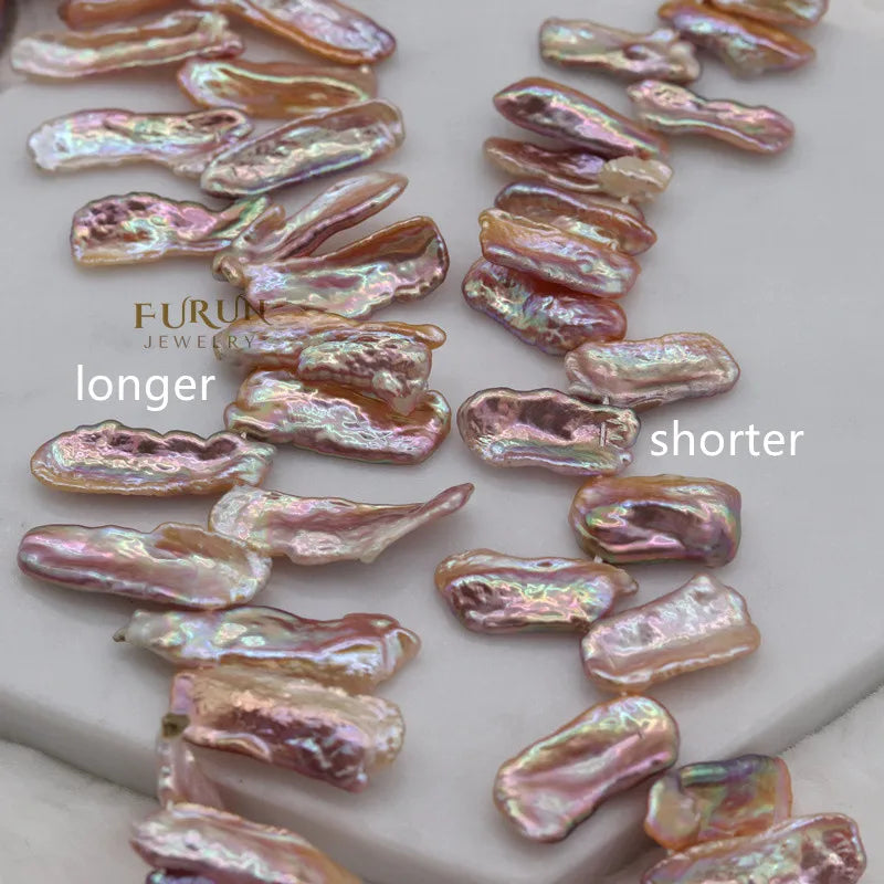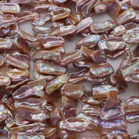 6-8X20-30mm Biwa freshwater pearl Top side drilled Flat irregular nugget Luxe purple gold Natural strong luster pearl bead 55pcs