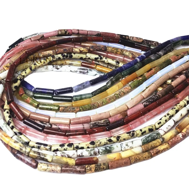 60 Colors Natural Stone 4x13mm Multi colors Jasper Quartz Jasper Semi Gemstone Tube Beads Cylinder Column Spacer Jewelry beads