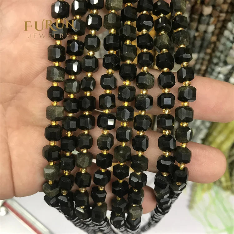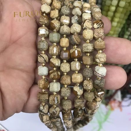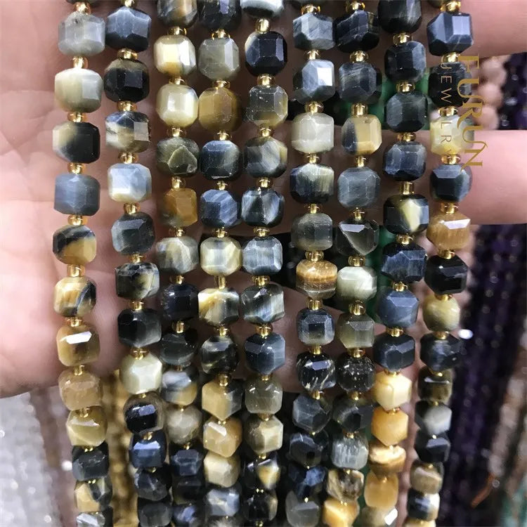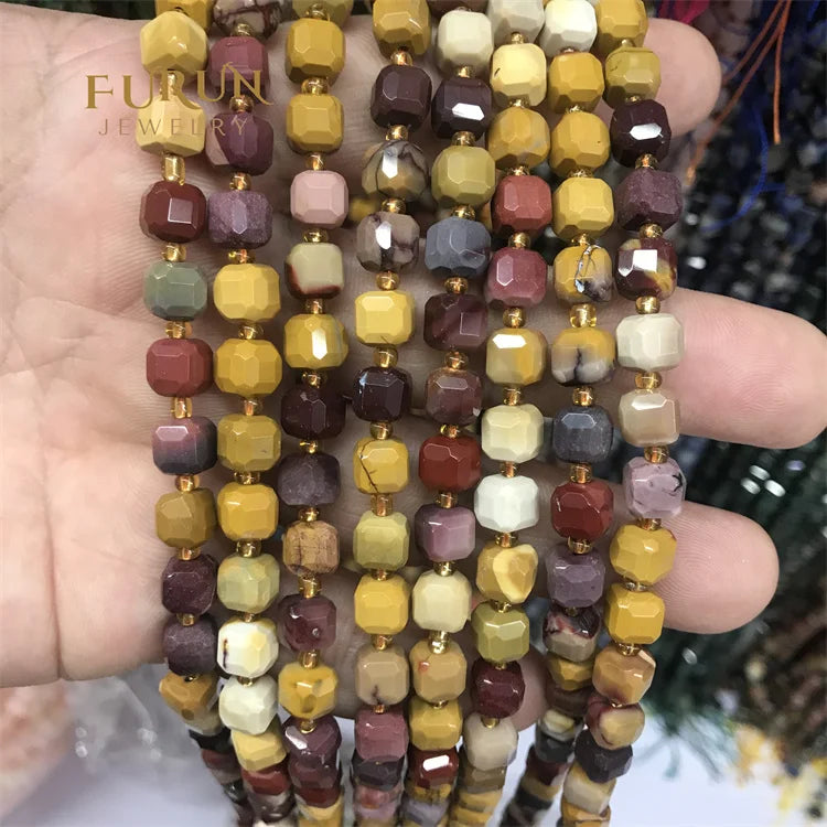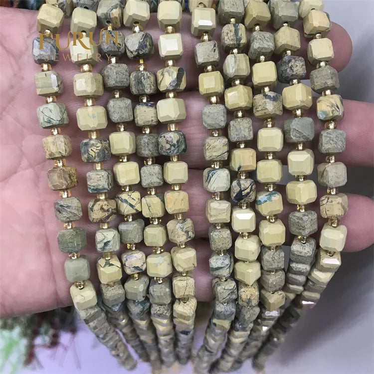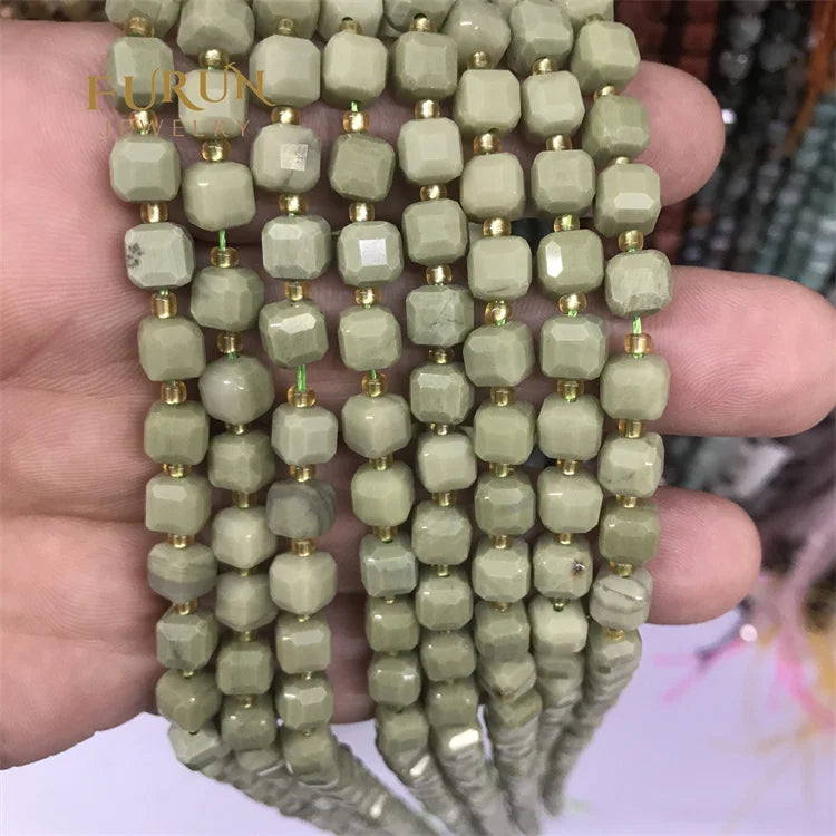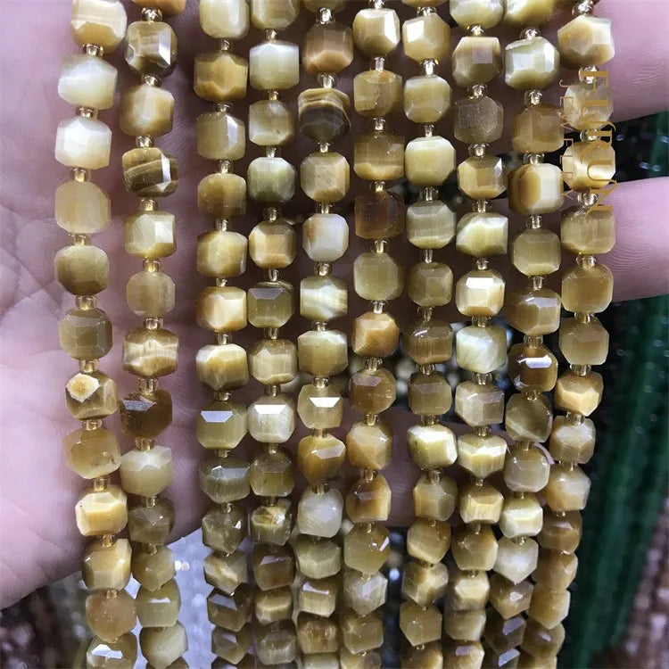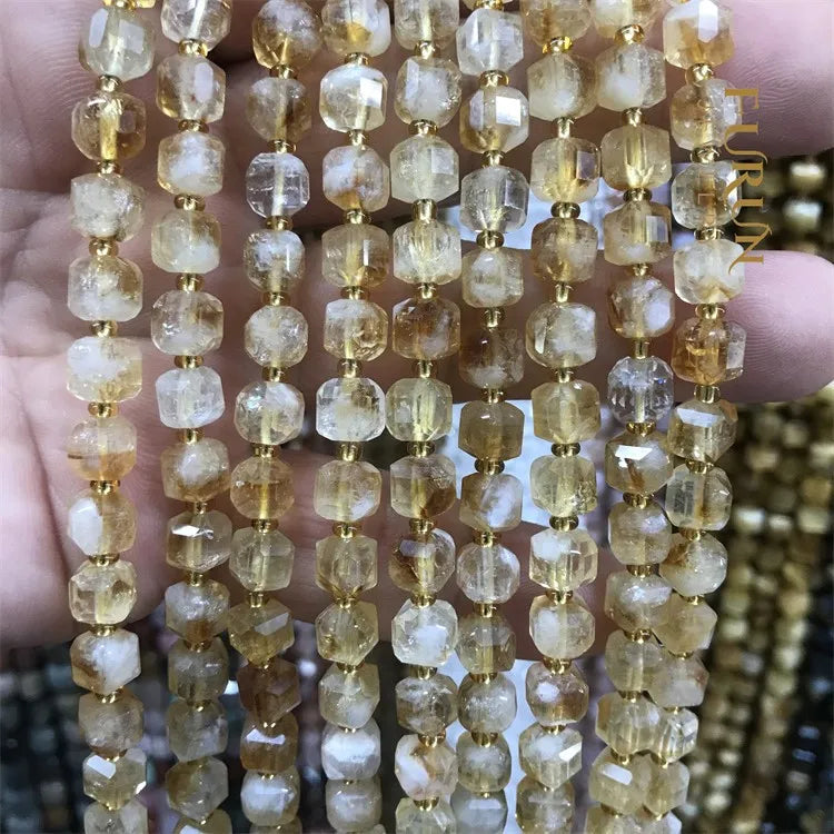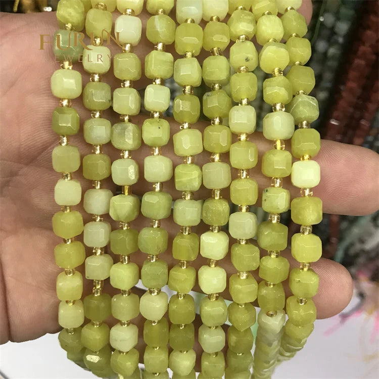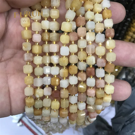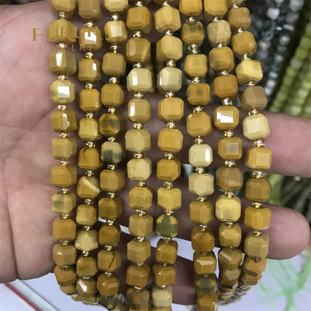 6mm Multi-faceted Square Natural Crystal Agate Crafts Gem Bead Yellow Opal Beads for DIY Jewelry Accessories