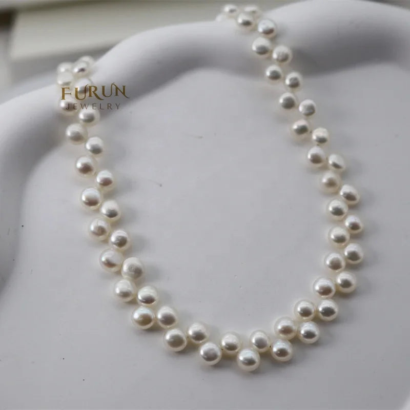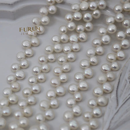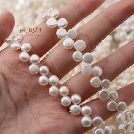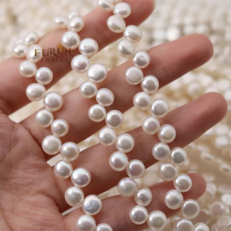 8-9mm Round Bread Pearl Bead with flat back white Natural Freshwater Pearl String Beads top side drilled for jewelry making