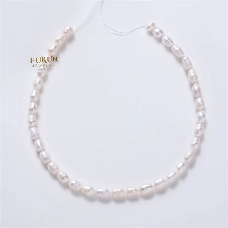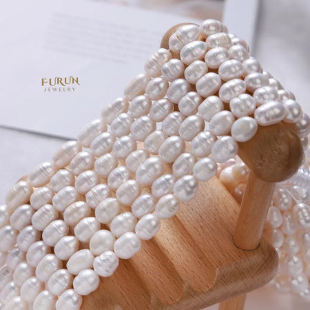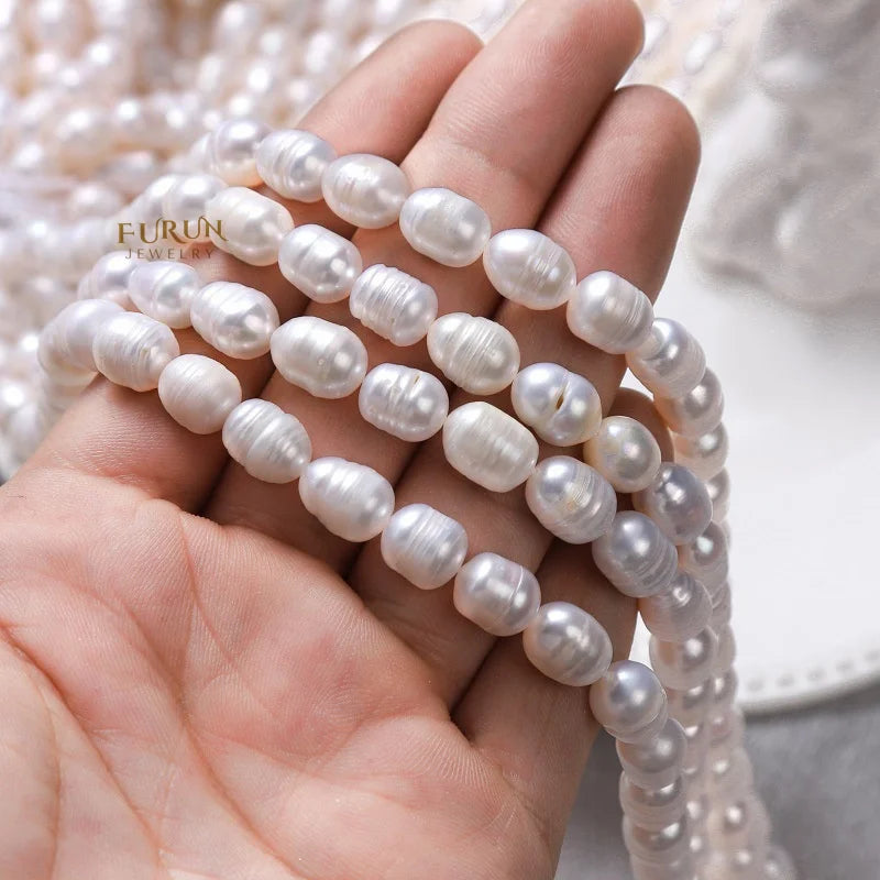 8mm Screw Thread Oval Beads Textured Rice Bead White Freshwater Pearl Strand Beads for jewelry making