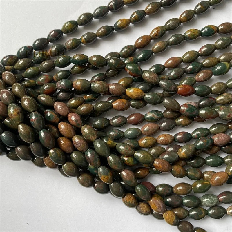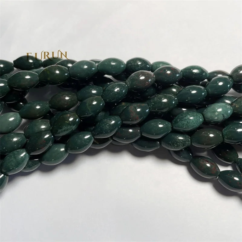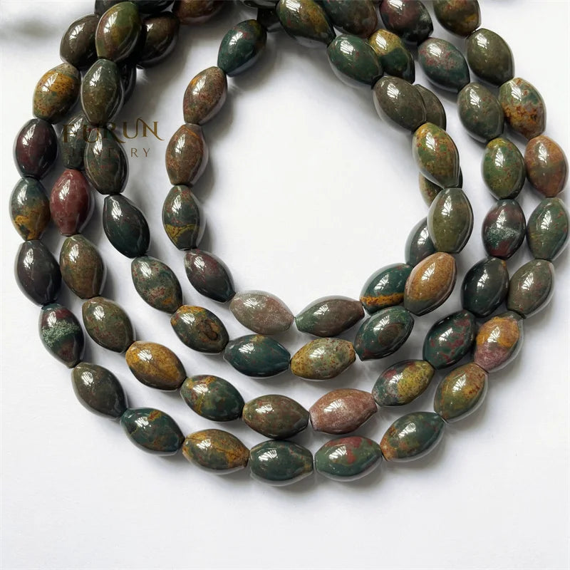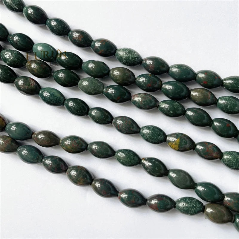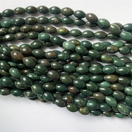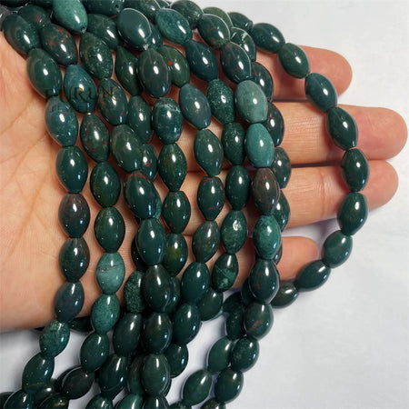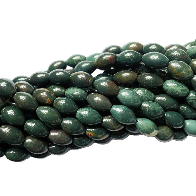 8x12mm Smooth Barrel Rice football beads Green Indian Bloodstone Round Oval String Beads Healing Gemstone Jewelry Making