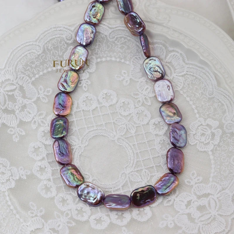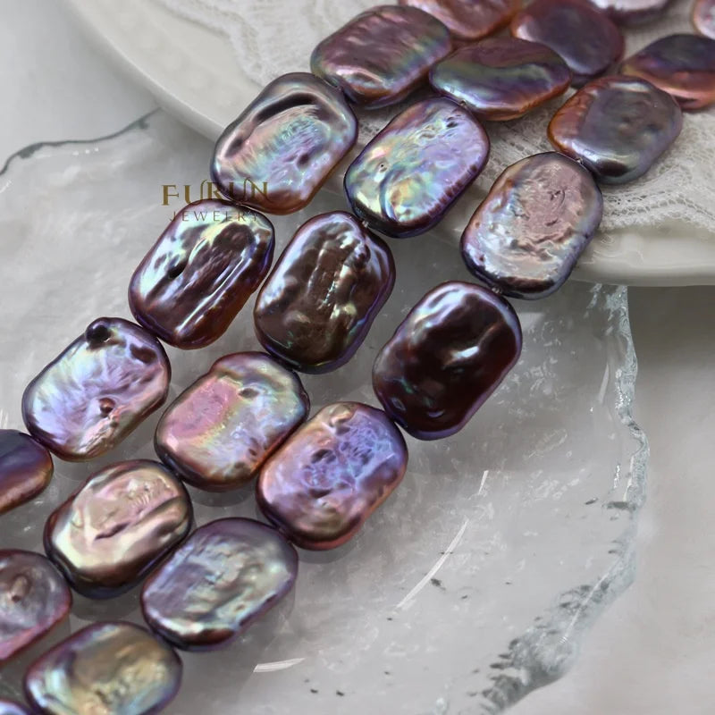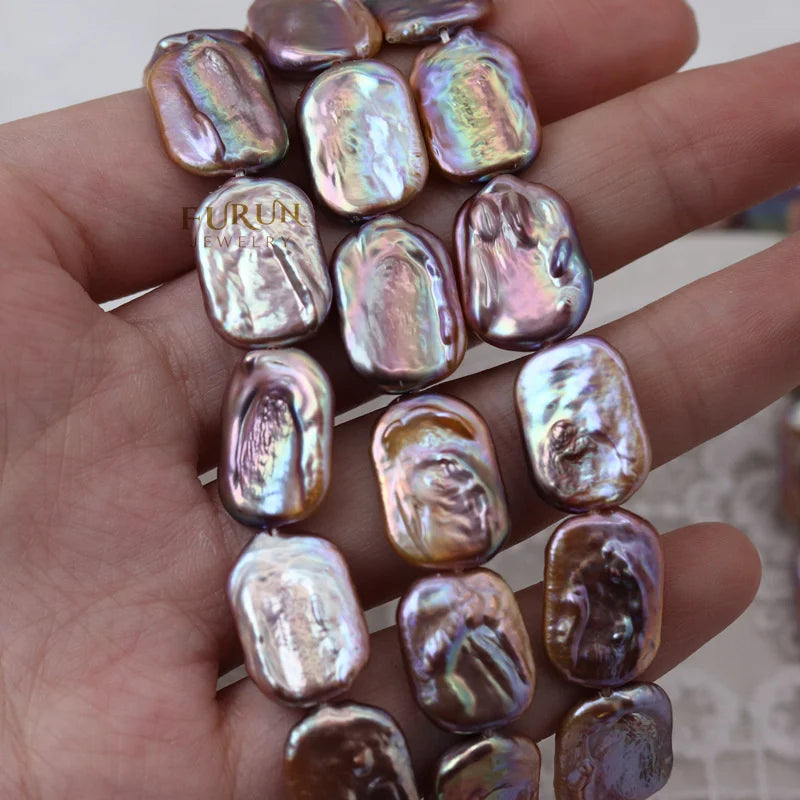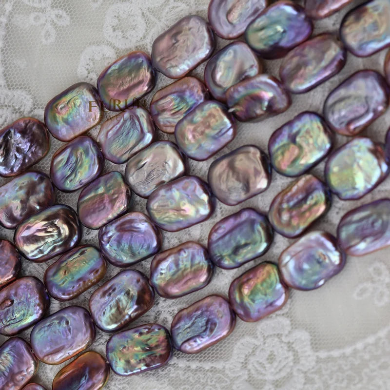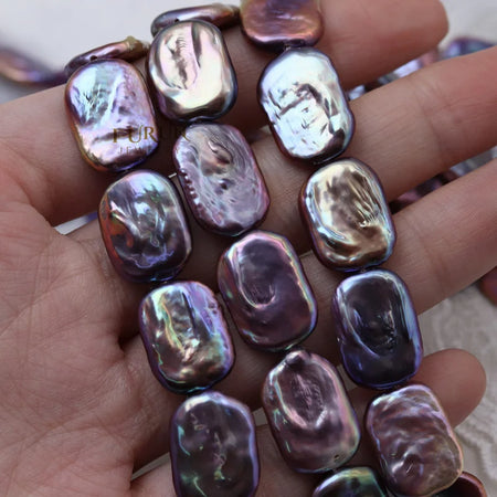 Approx 14x19MM Flat Oblong Bead Purple Freshwater Baroque Pearl rounded corner rectangle Oval Pearl Drilled Loose Beads Jewelry