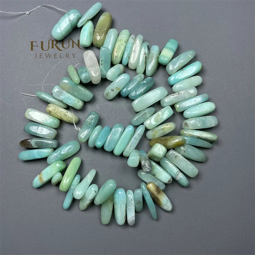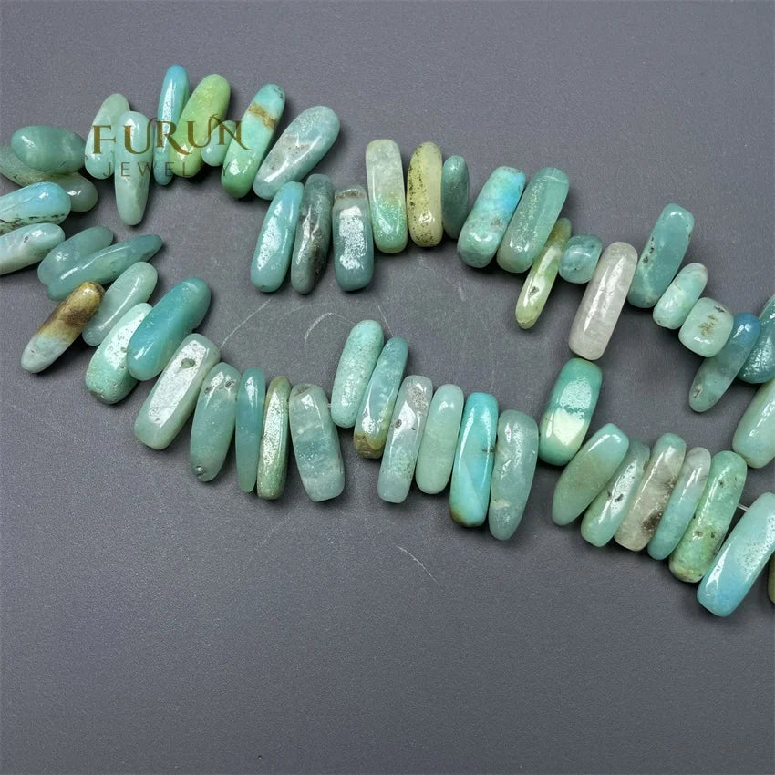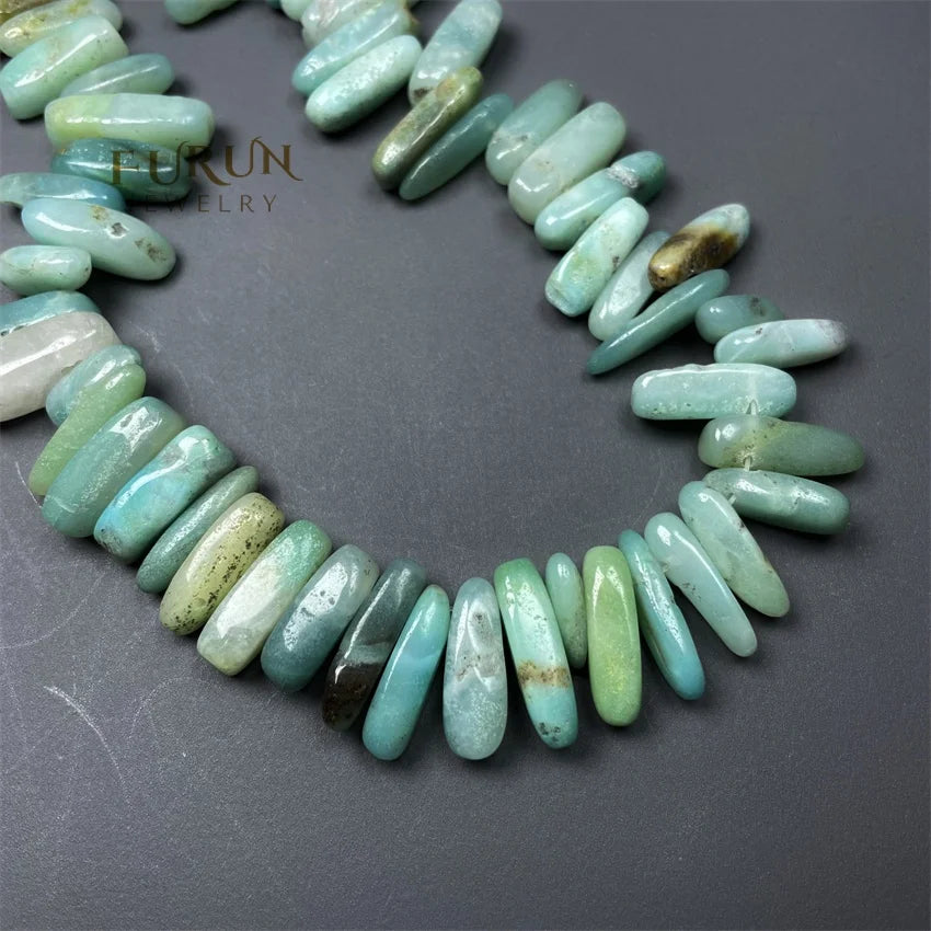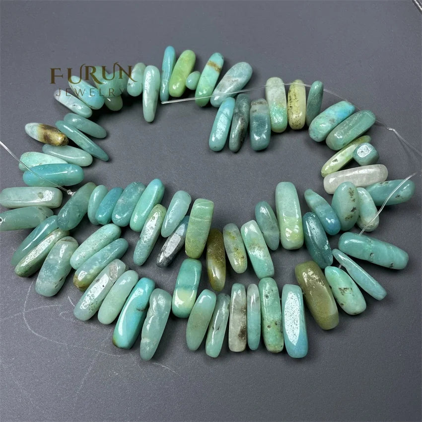 Chinese Amazonite Stone Chips Stick Beads Nugget Tusk Top Drilled Smooth Pendant Irregular Gemstone Long Beads 15inch Necklace