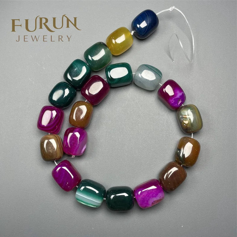 Factory Wholesale semiprecious stone colorful agate tumbled rectangular bead 15x19mm nugget beads for necklace jewelry make