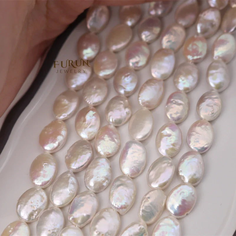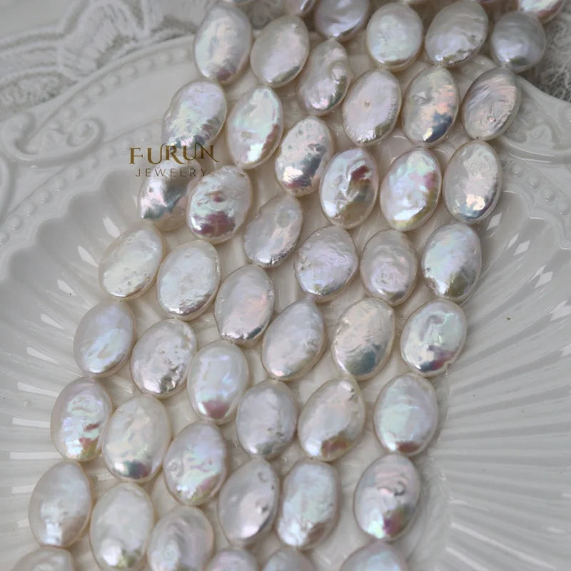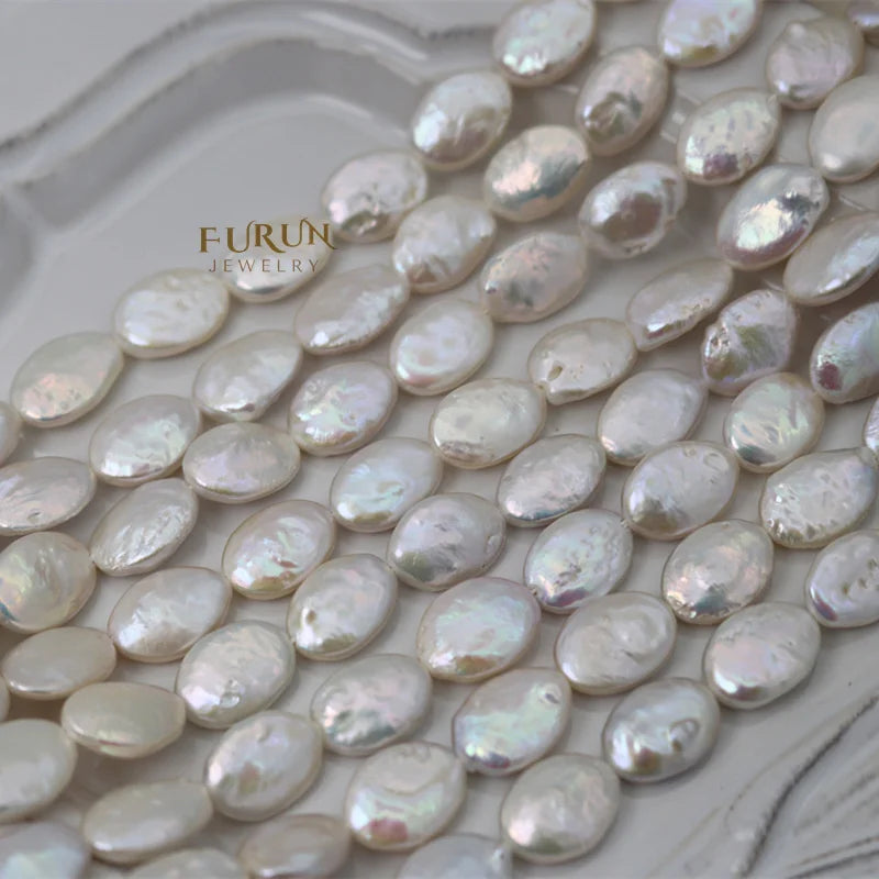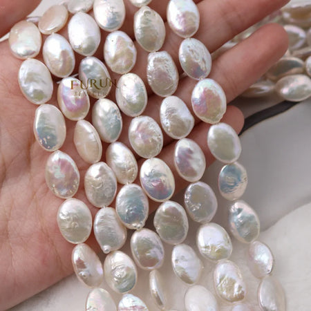 Freshwater Pearl White Flat Oval Bead 9X14MM Baroque Strong Luster Drilled Oblong Shape Pearls Loose Beads for Jewelry Making