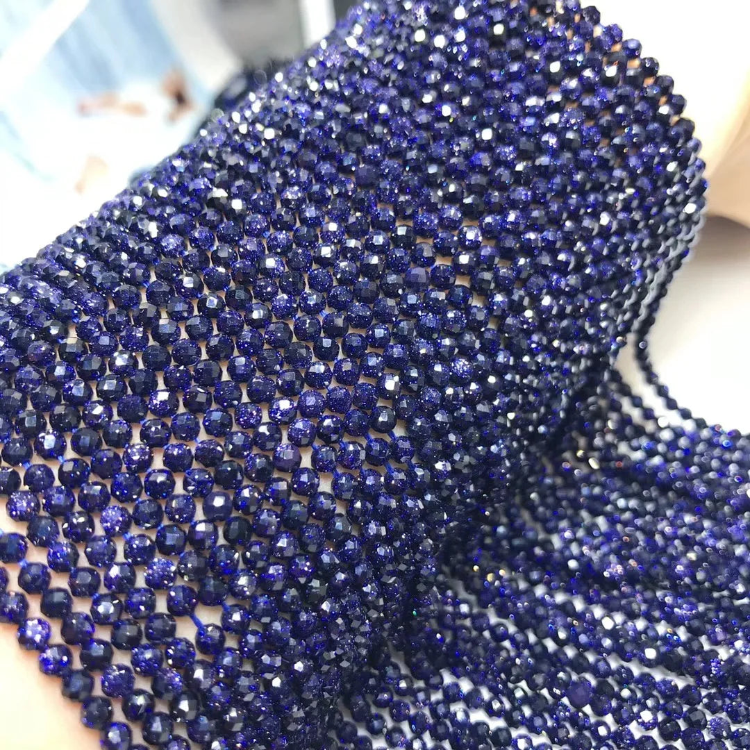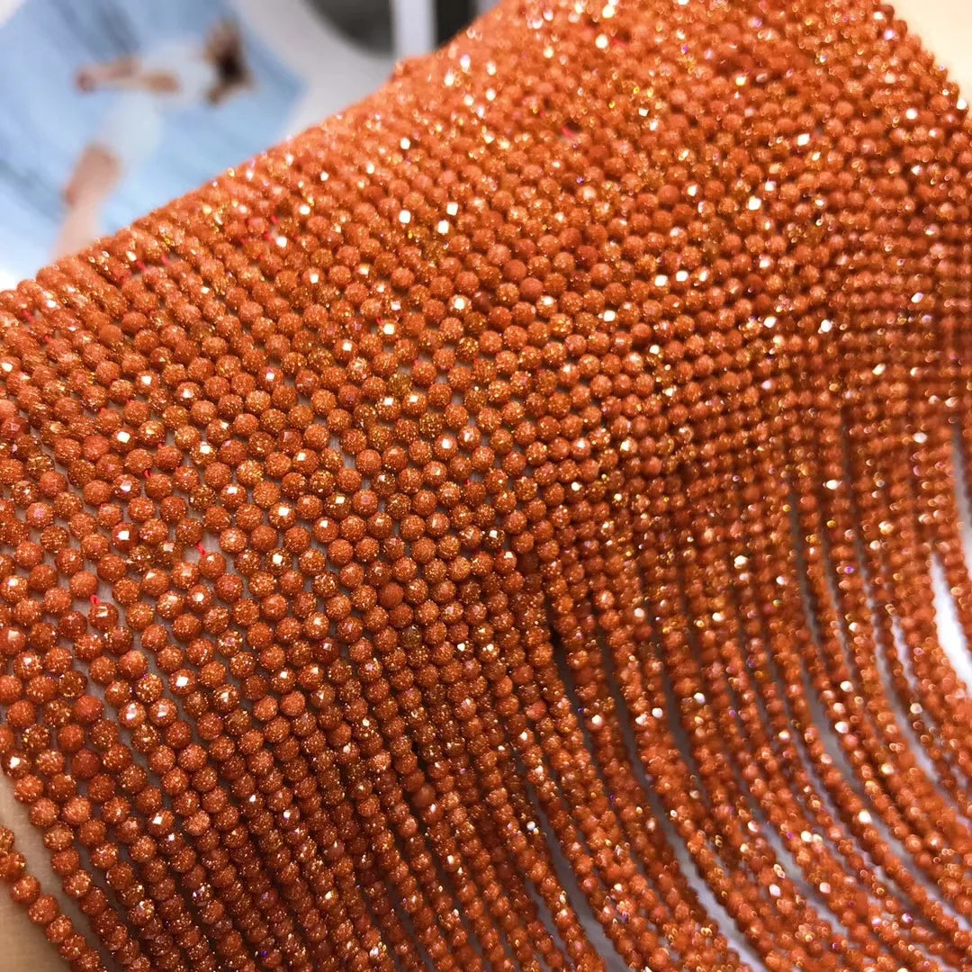 2MM 3MM 4MM Shinny small cutting faceted Goldstone Round Beads strand loose Glass beads for Jewelry making DIY