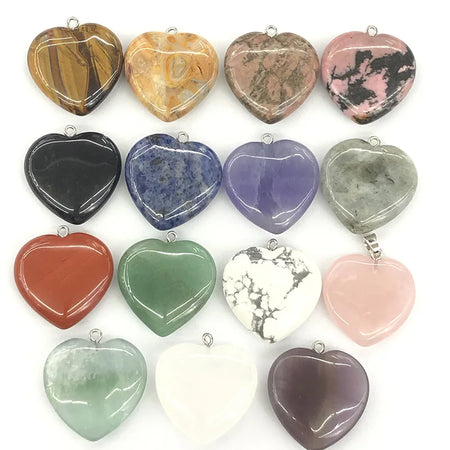 Multi colors natural stone 30mm heart pendant Agate Jasper Quartz Turquoise Heart for necklace jewelry making