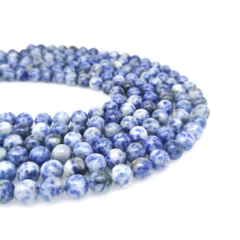 Natural Blue Dalmatian Jasper Beads and Blue Spot Loose Stone Beads for diy Jewelry Making Round