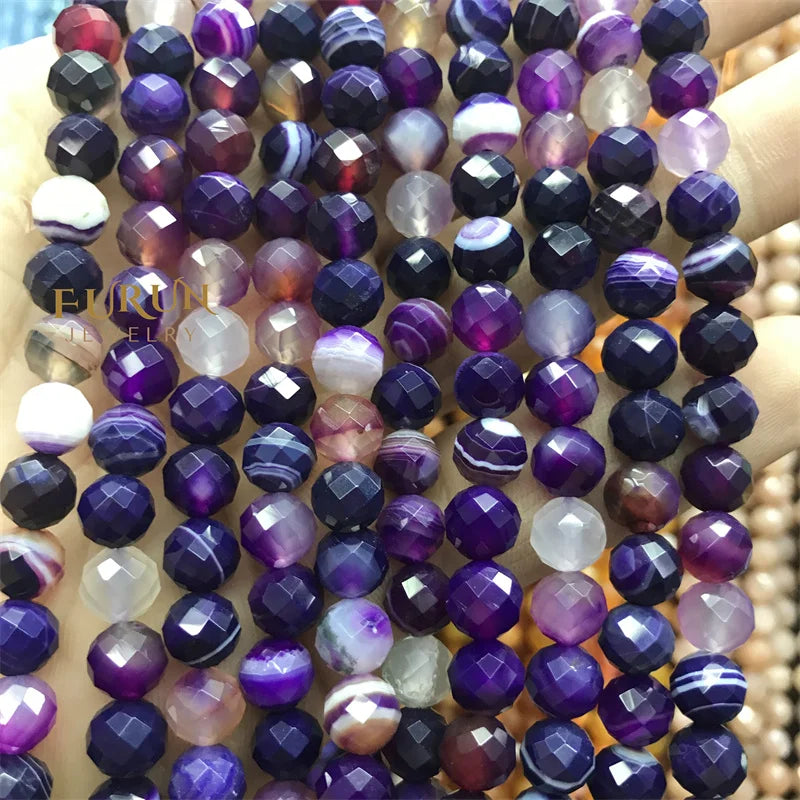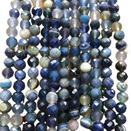 Natural blue stripe agate Faceted Round Beads 6MM 8MM Gemstone Loose Beads for Jewelry making Beads Supplier