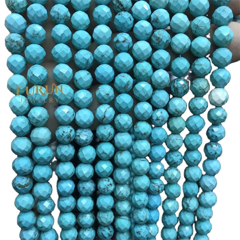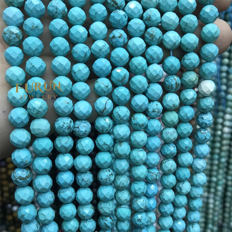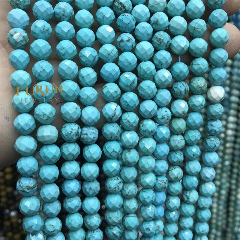 Natural blue turquoise Faceted Round Gemstone Beads 6MM 8MM Loose Beads for Jewelry making Beads Supplier