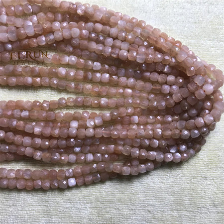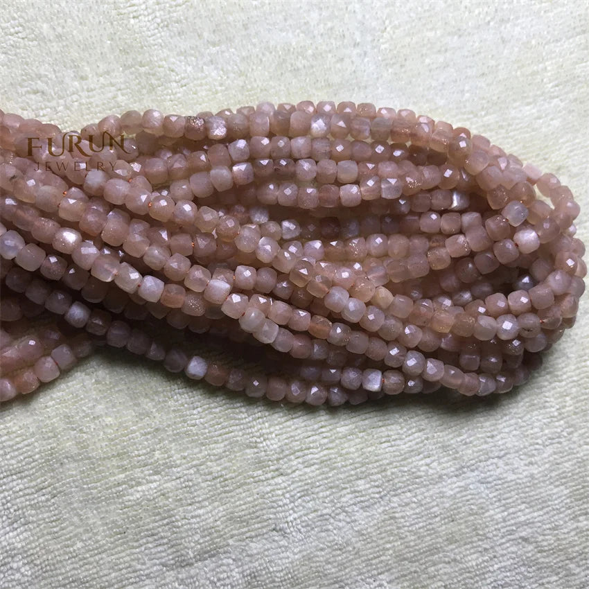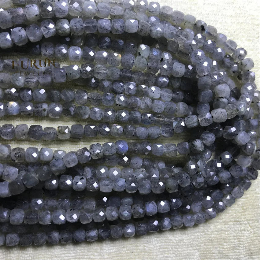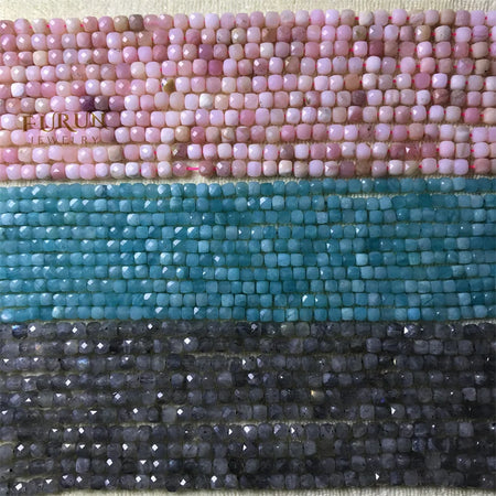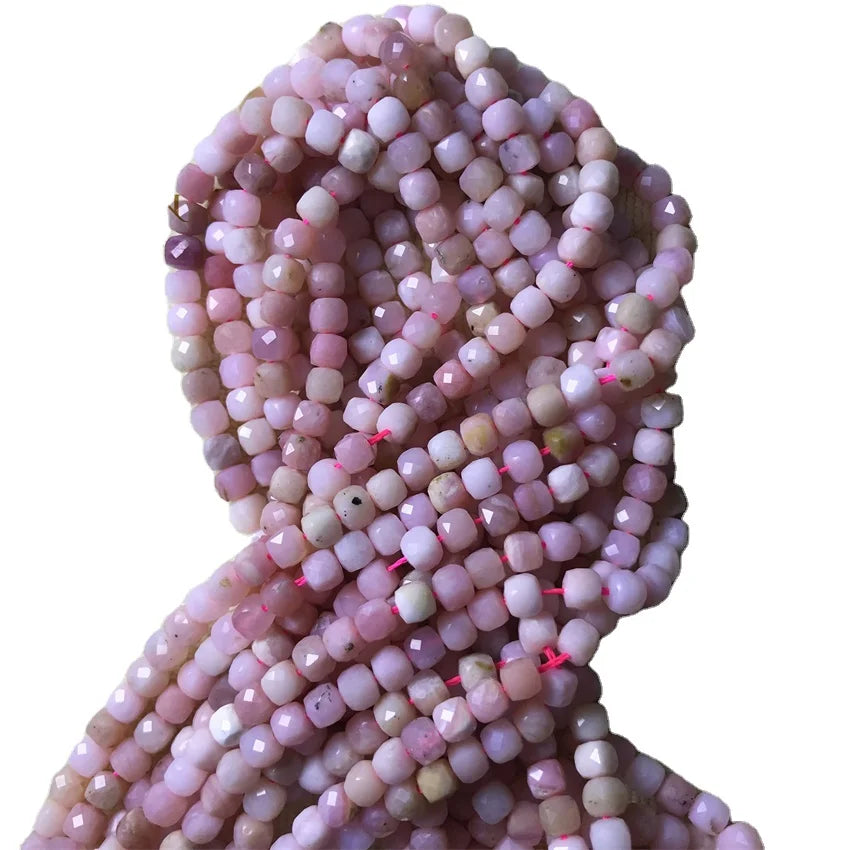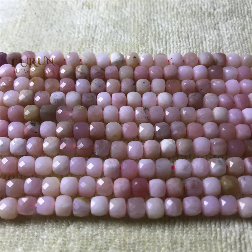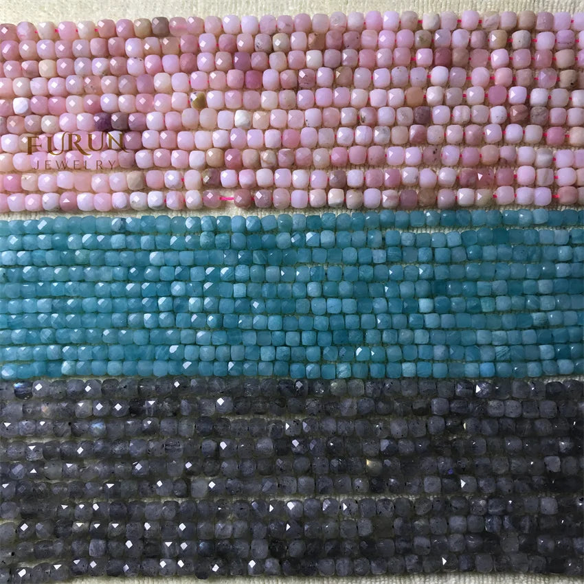 Natural Gemstone 4mm Faceted Cube Beads Pink Opal Amazonite Labradorite Sunstone Square Stone Bead Cutitng Box Loose Beads