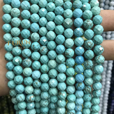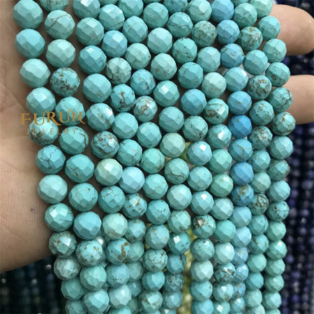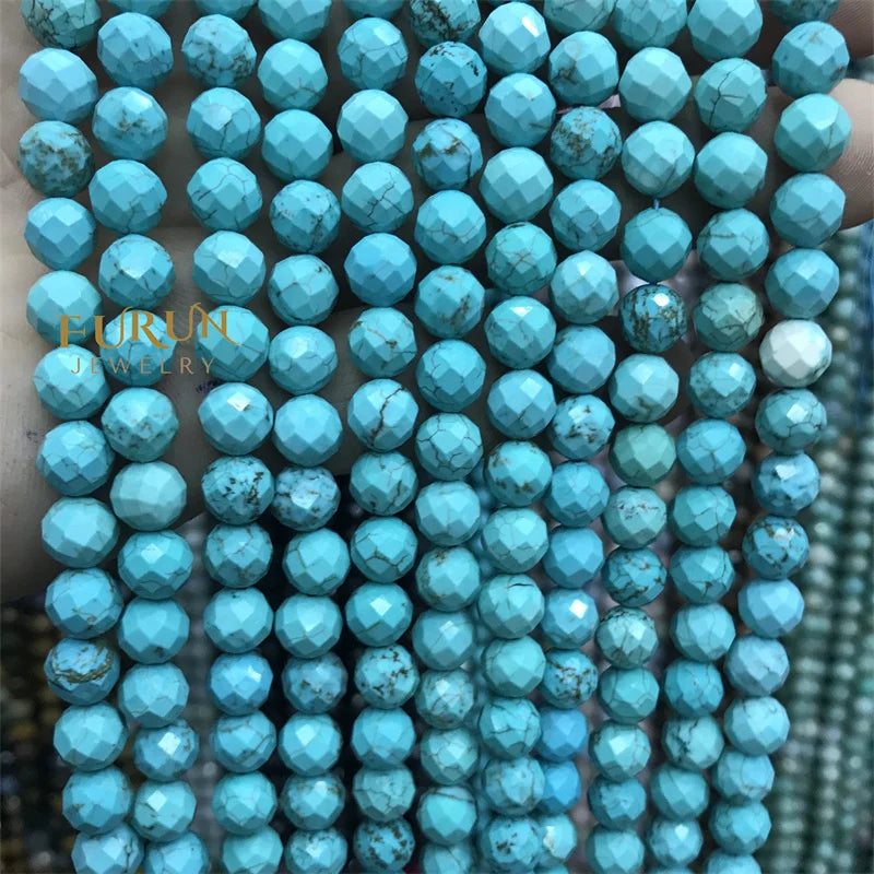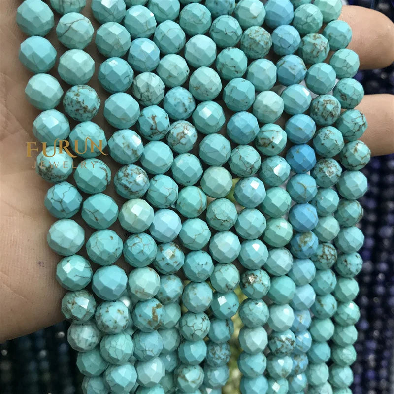 Natural green turquoise Faceted Round Gemstone Beads 6MM 8MM Loose Beads for Jewelry making Beads Supplier