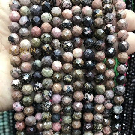 Natural pink rhodonite Faceted Round Gemstone Beads 6MM 8MM Loose Beads for Jewelry making Beads Supplier