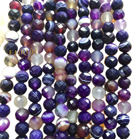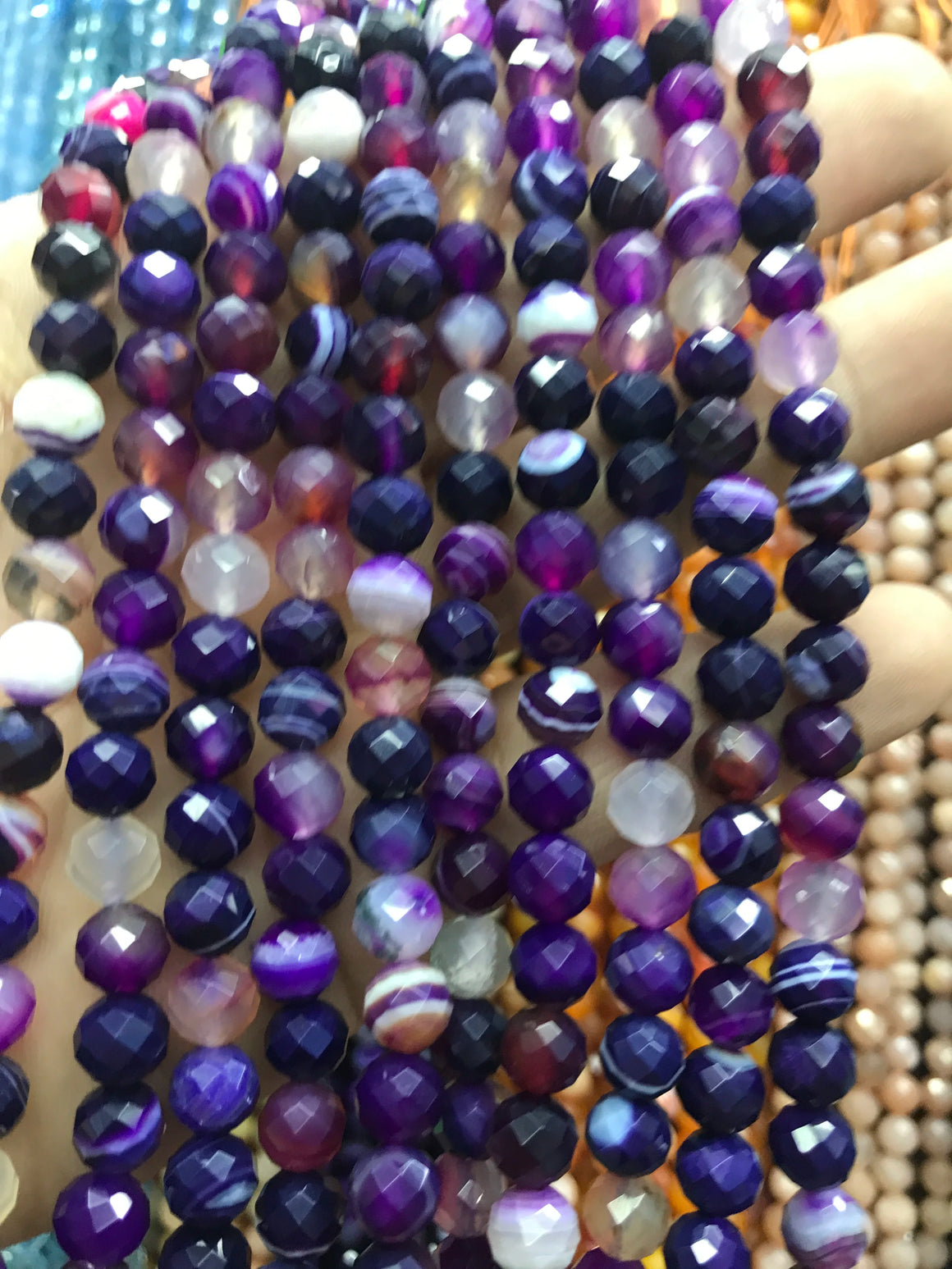 Natural purple stripe agate Faceted Round Gemstone Beads 6MM 8MM Loose Beads for Jewelry making Beads Supplier