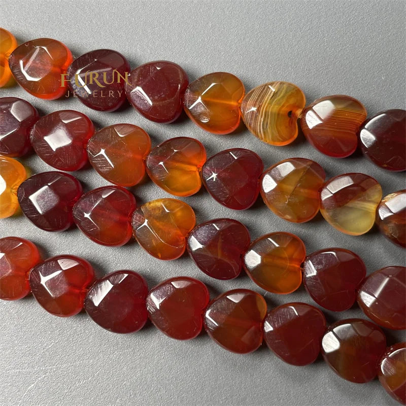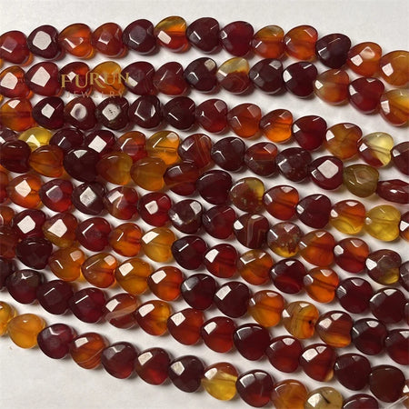 Natural Semi Gemstone Carnelian Faceted Heart Beads 10mm Red Agate Chakra Gemstone Drilled Loose Beads For Jewelry Making Furun