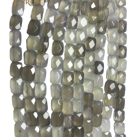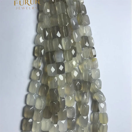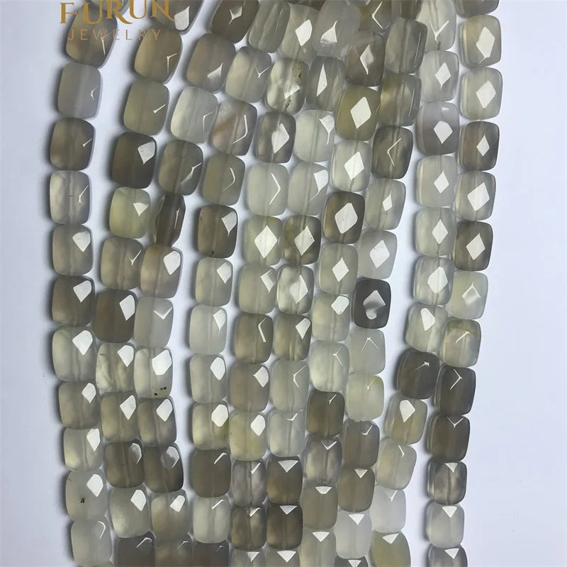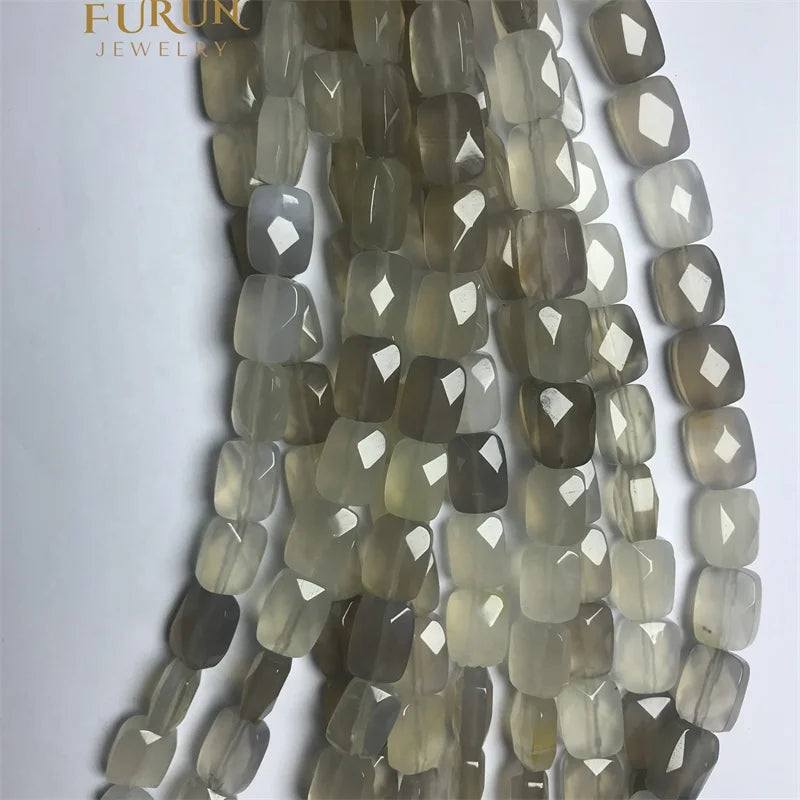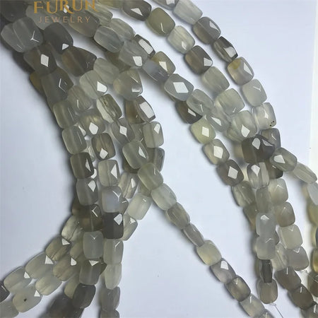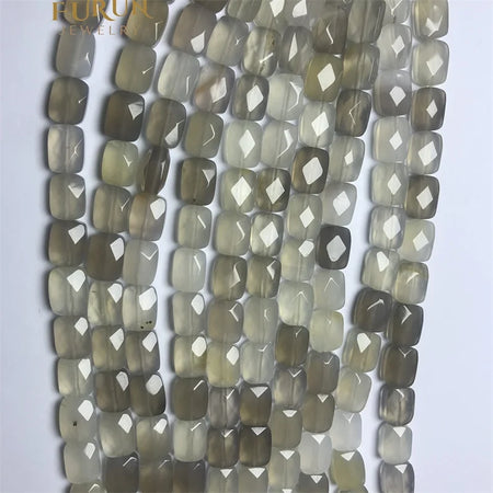 Natural Stone Bead Strings grey agate Flat Faceted Square Rectangle Flat Faceted Square Rectangle Flat Faceted Square Rectangle