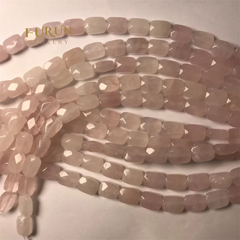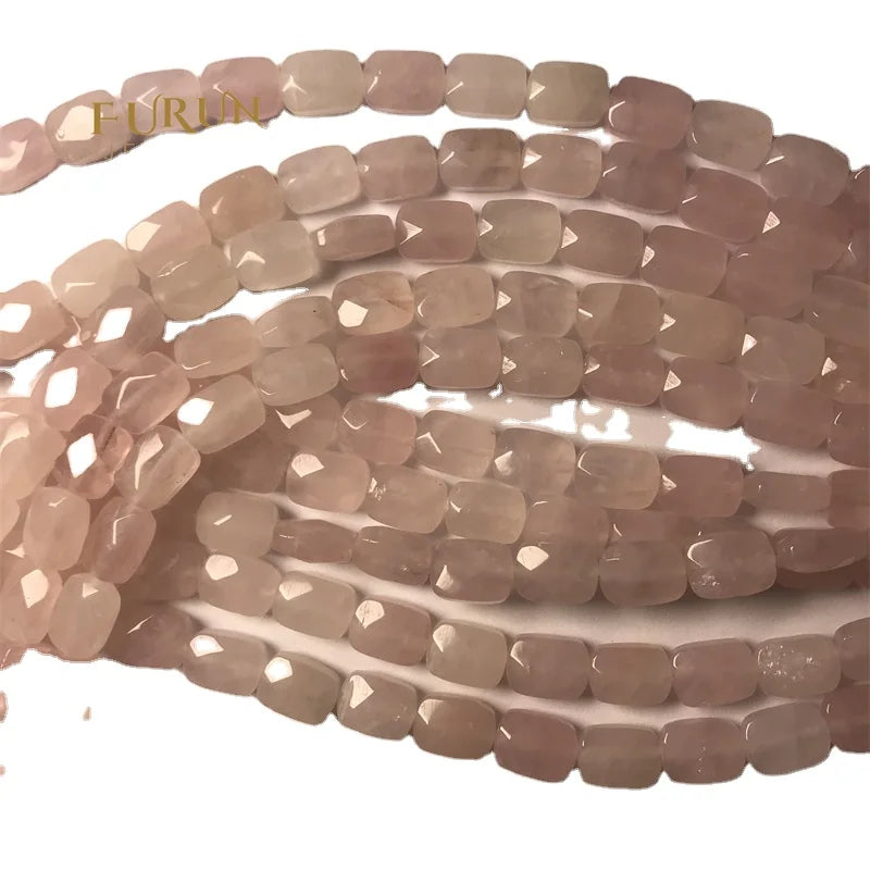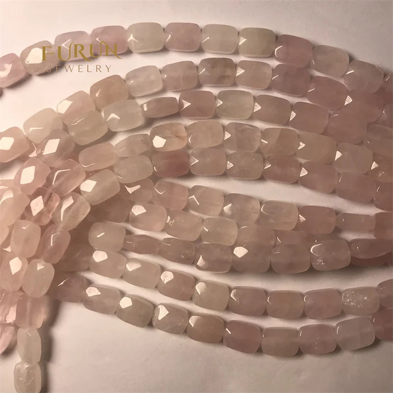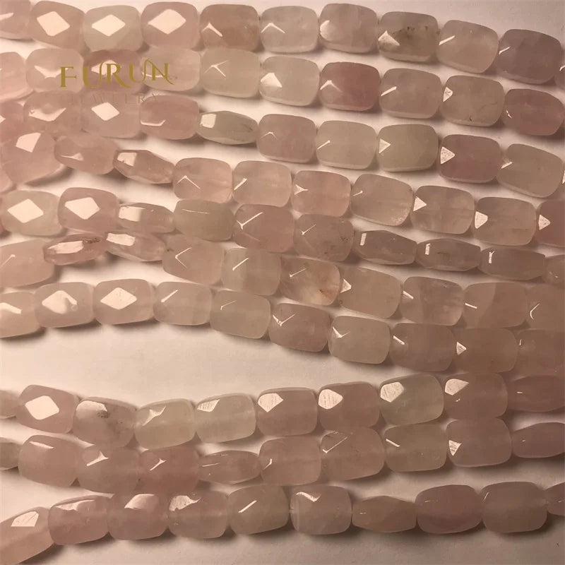 Natural Stone Bead Strings rose quartz Flat Faceted Square Rectangle Flat Faceted Square Rectangle Flat Faceted beads