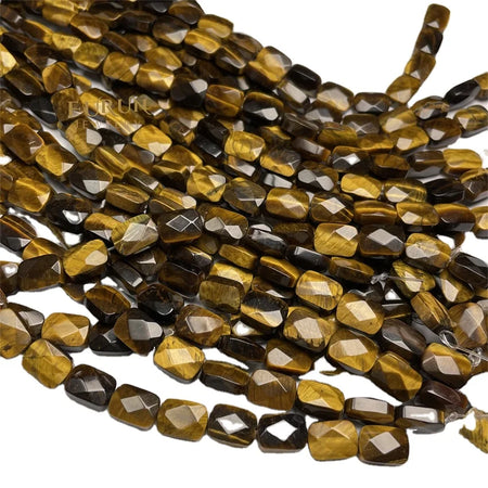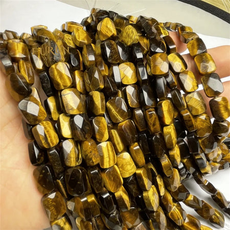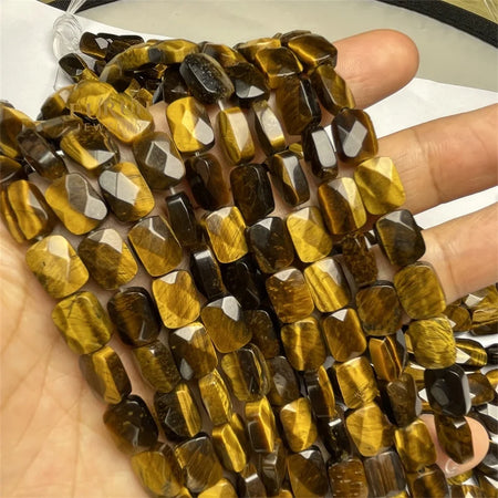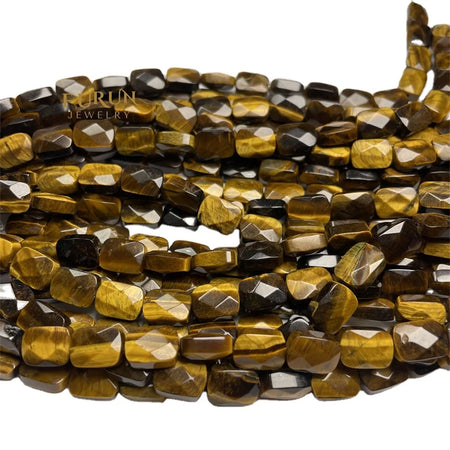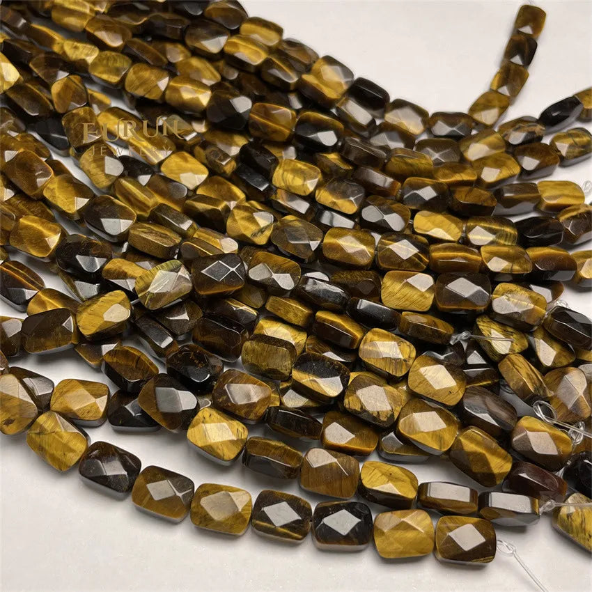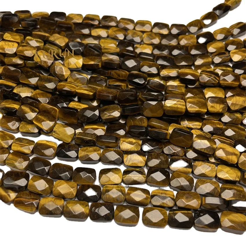 Natural Stone Bead Strings Tiger Eye Flat Faceted Square Rectangle Shape Loose Beads 8x11mm For DIY Jewelry Making Supplies