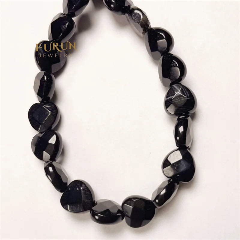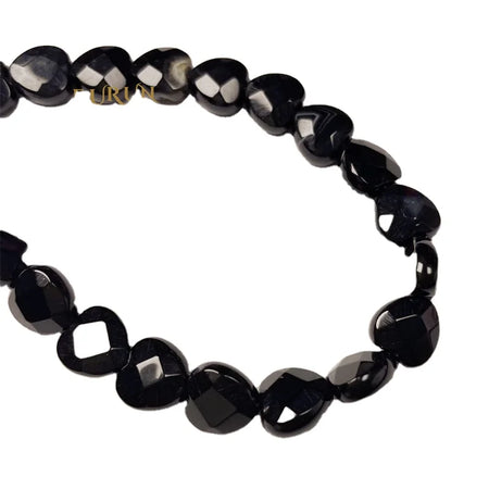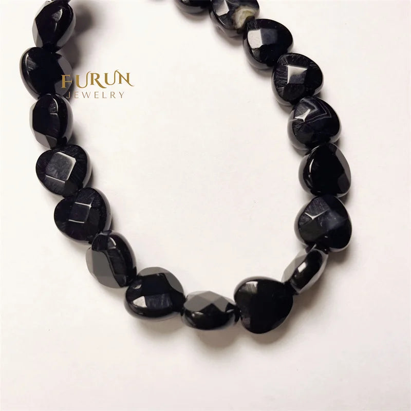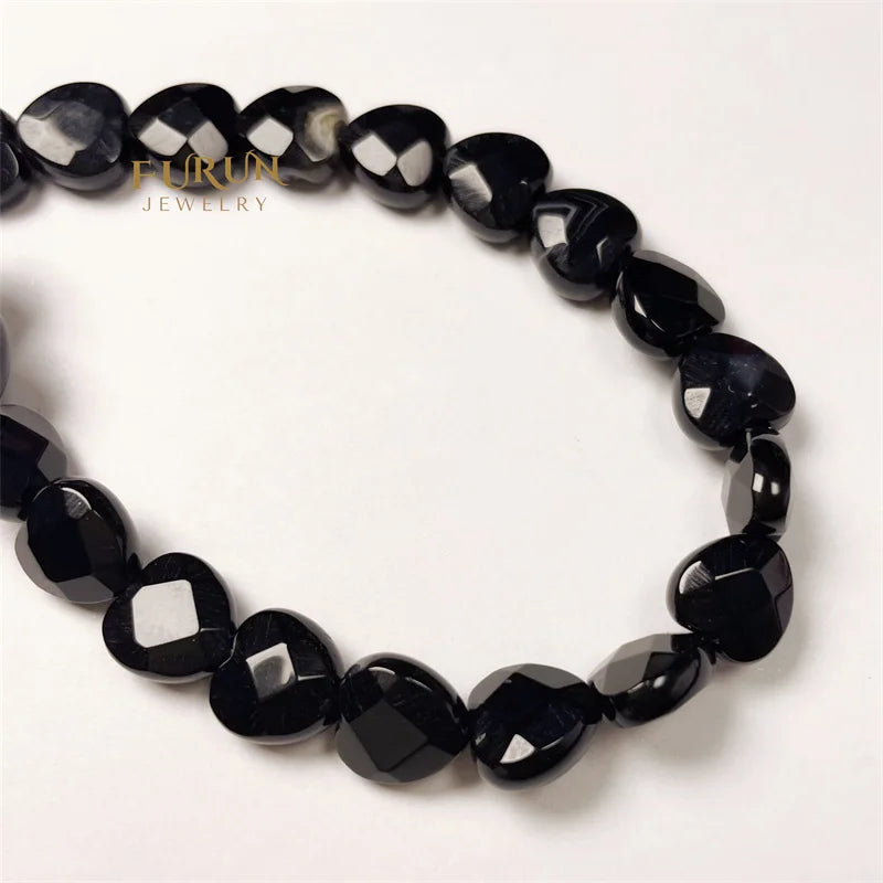 Natural Stone Black Agate Onyx Faceted Heart Beads 10mm Chakra Healing Gemstone Drilled Loose Beads For Jewelry Making