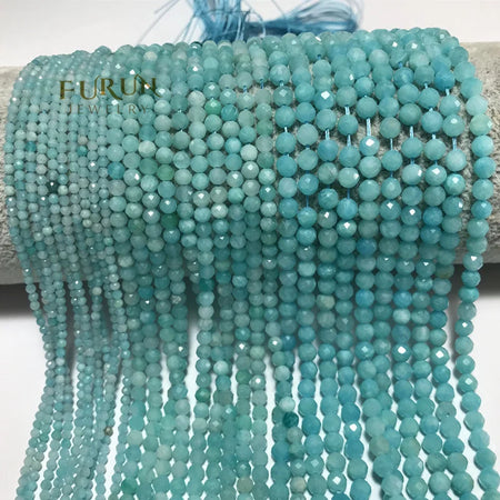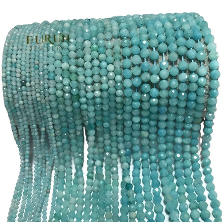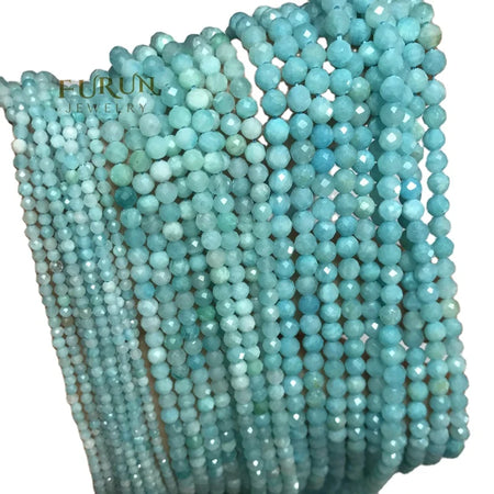Natural Stone Blue Amazonite Faceted Small Round Beads 2mm 3mm 4mm6mm Healing Gemstone Tiny spacer Loose Bead for Jewelry making