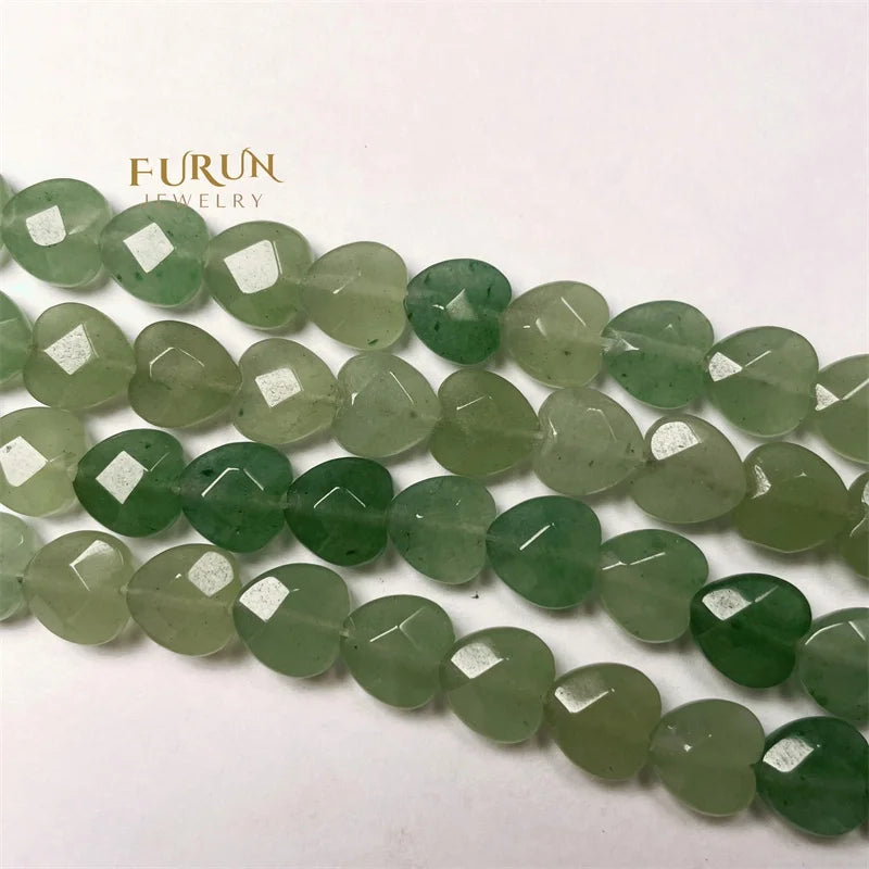 Natural Stone Green Aventurine Faceted Heart Beads 10mm Chakra Healing Gemstone Drilled Loose Beads For Jewelry Making